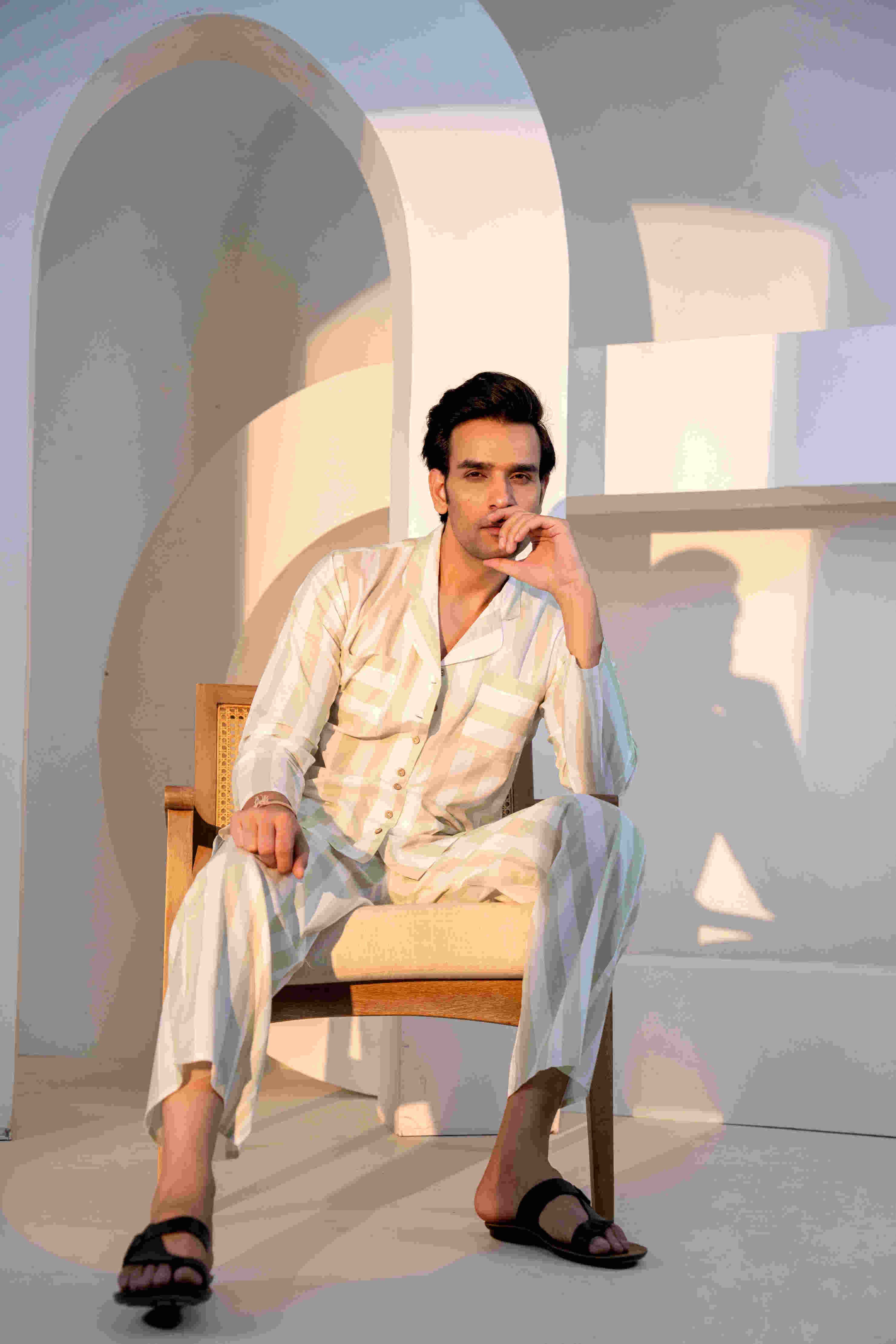 100% Cambric Cotton Sage Stripes Sleepwear 2