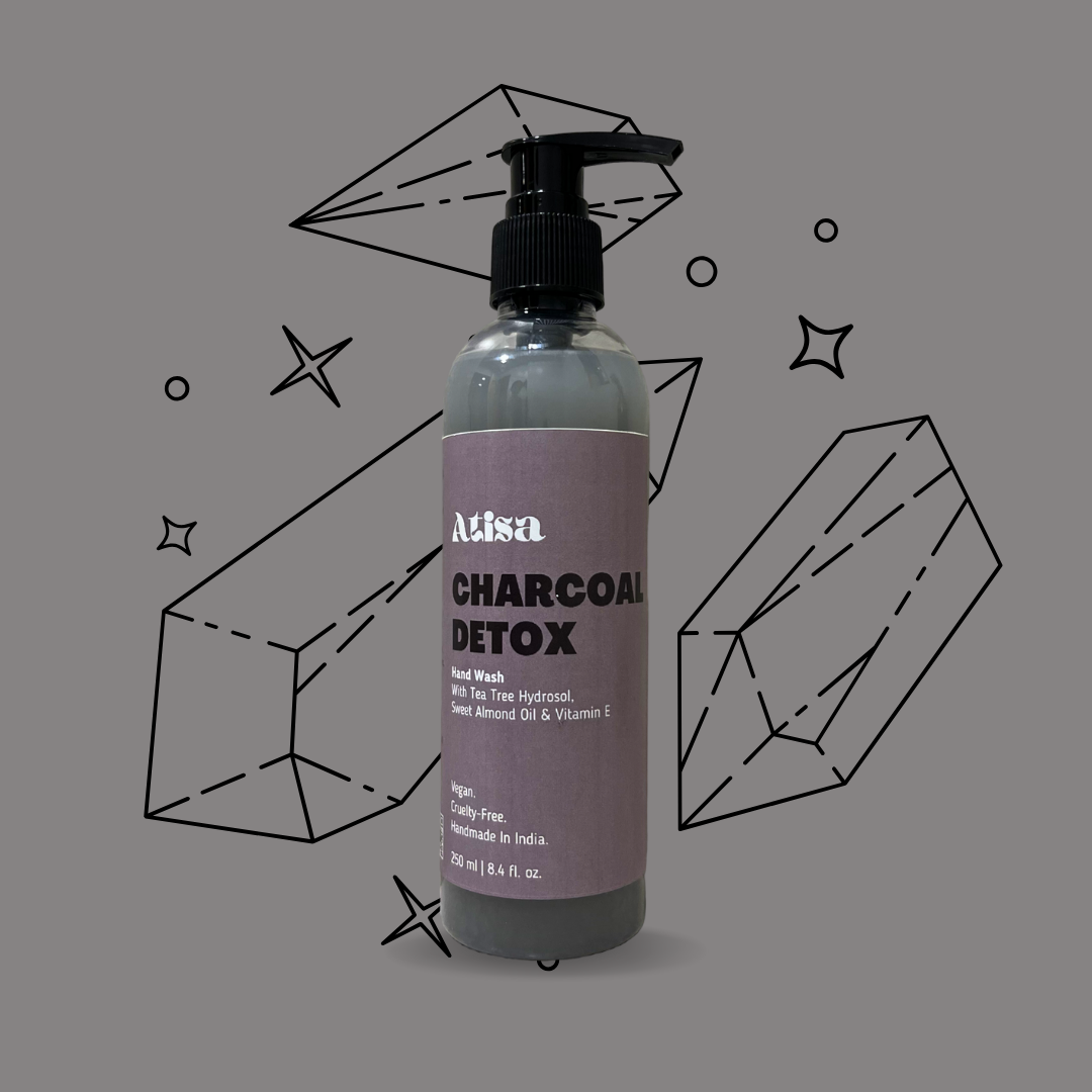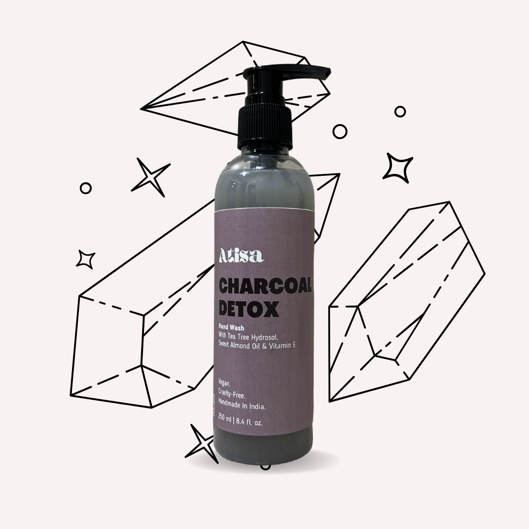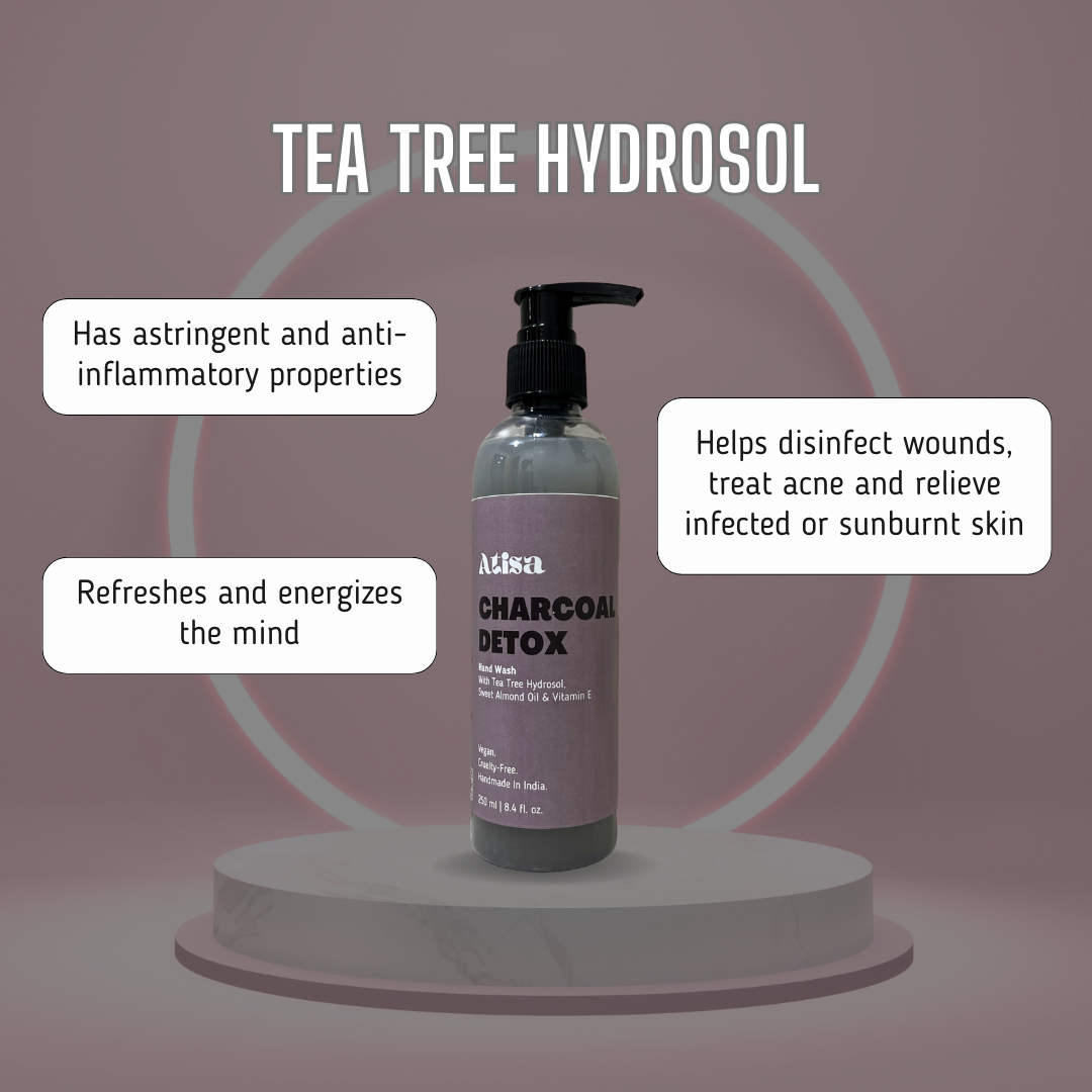 Leave your hands feeling fresh and hydrated with Atisa's collection of hand washes for a truly unique and memorable fragrance experience! Crafted with natural hydrosols, that are the gentler version of essential oils but with all the same goodness, they absorb easily into the skin nourishing it from within. Charcoal Detox is formulated with Tea Tree Hydrosol that: has astringent and anti-inflammatory properties, helps disinfect wounds, treat acne and relieve infected or sunburnt skin, refreshes and energizes the mind. Along with the added benefits of Sweet Almond Oil, Vitamin E and Glycerine for maximum skin nourishment!