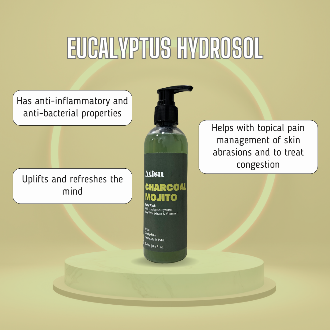 Leave your skin feeling fresh and hydrated with Atisa's collection of body washes for a truly unique and memorable fragrance experience! Crafted with natural hydrosols, that are the gentler version of essential oils but with all the same goodness, they absorb easily into the skin nourishing it from within. Charcoal Mojito is formulated with Eucalyptus Hydrosol that: has anti-bacterial and anti-inflammatory properties, helps with topical pain management of skin abrasions and to treat congestion, uplifts and refreshes the mind. Along with the added benefits of Vitamin E, Aloe Vera Extract and Glycerine for maximum skin nourishment!