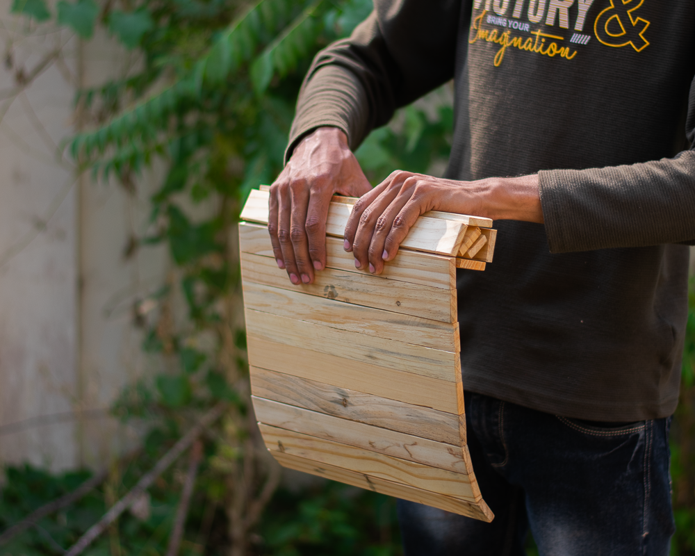 This product falls under our Salvage range, which encourages no chopping of living mature trees for wood. The Salvage range by Scrapshala will never fail to speak of your conscious style statement and concern for the environment. All the products of the Salvage range are upcycled from reclaimed wood and handcrafted by the local artisans of Varanasi.