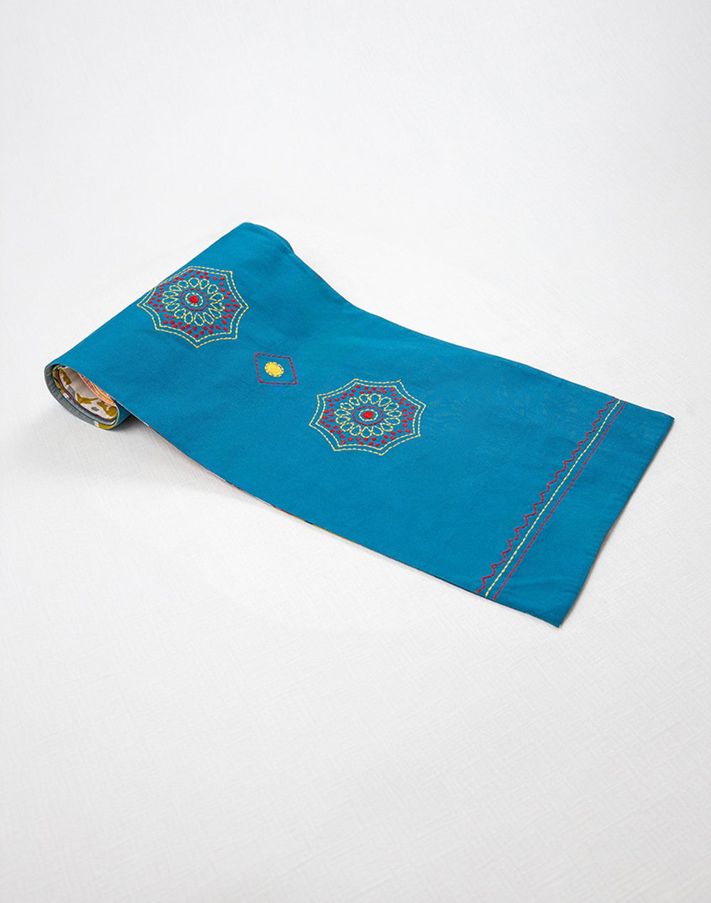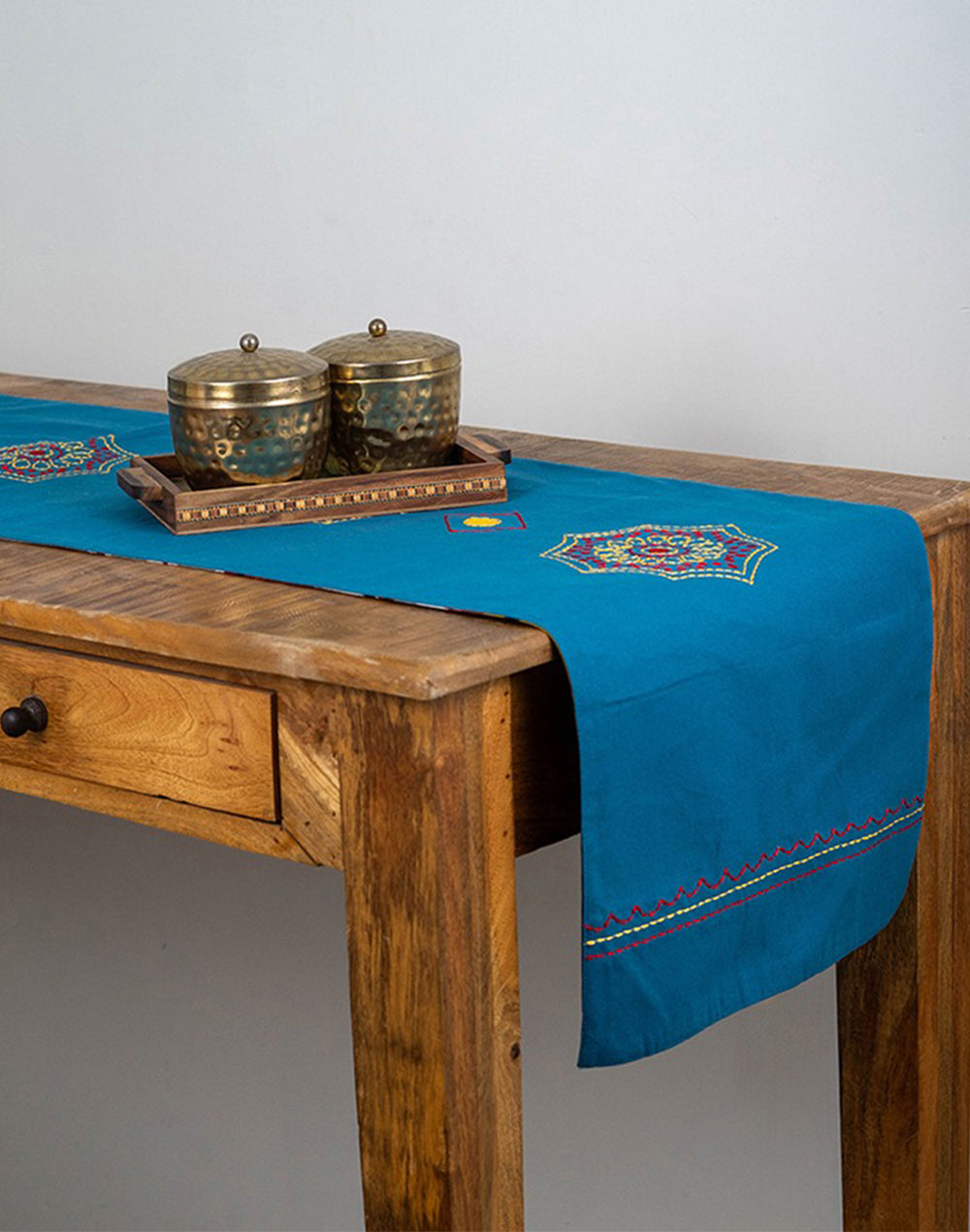Blue Color Cotton Embroidery Table Runner Size-15"X72"