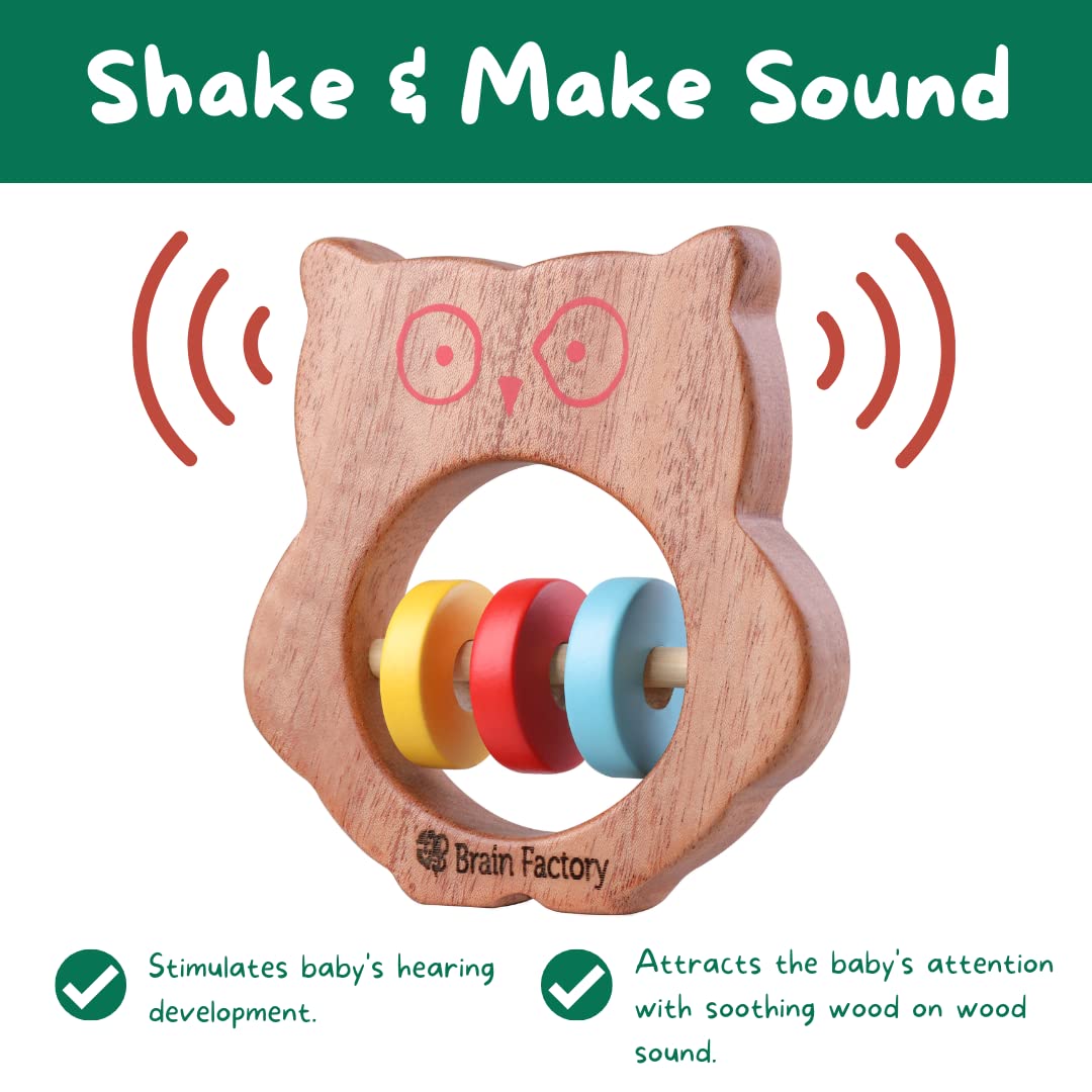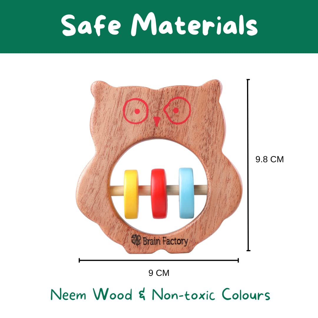 Brain Factory Owl-Shaped Neem wood Teether Rattle for 3 Months and Up