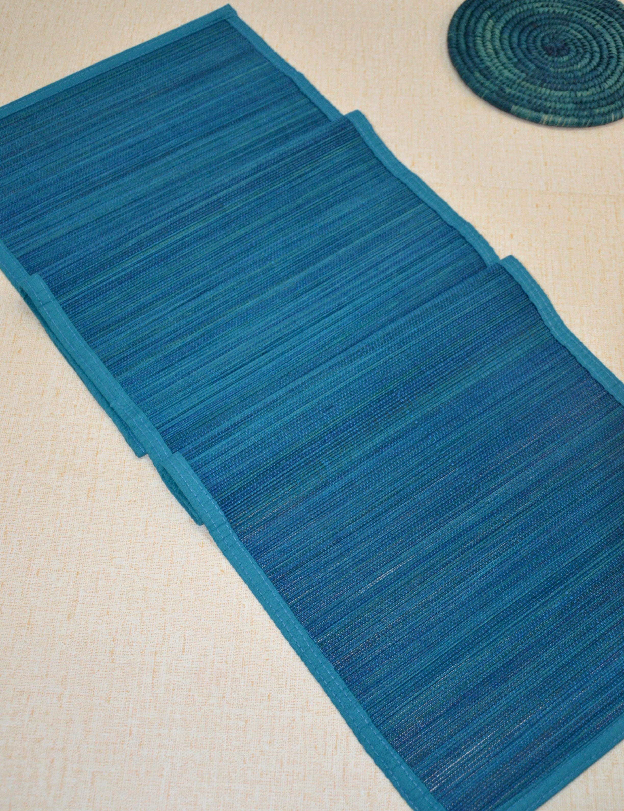 Table runner constructed from Bamboo sticks and interwoven with cotton thread. Earthy and Eco-friendly, these are a perfect addition to your home and complement most themes.