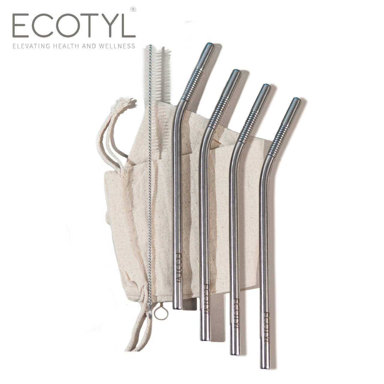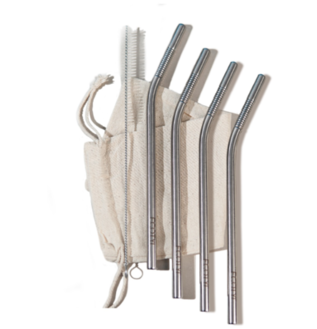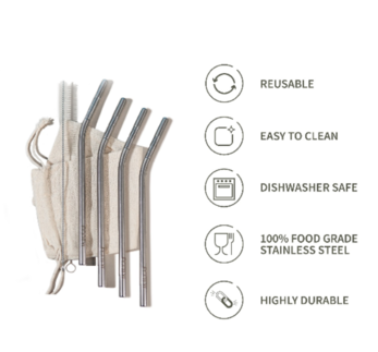 Ecotyl Stainless Steel Straw Bent with Cleaning Brush | Reusable Straws | Set of 4