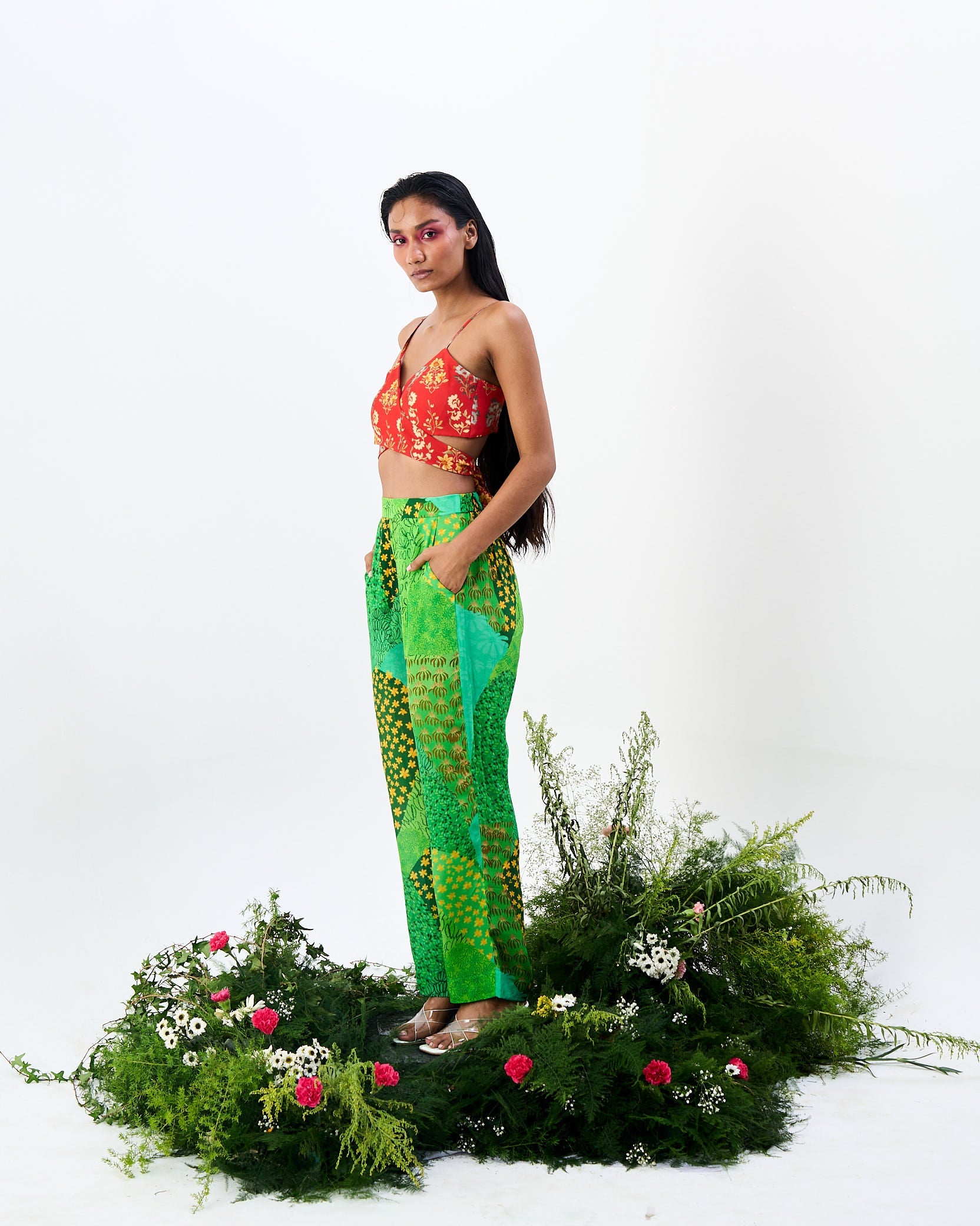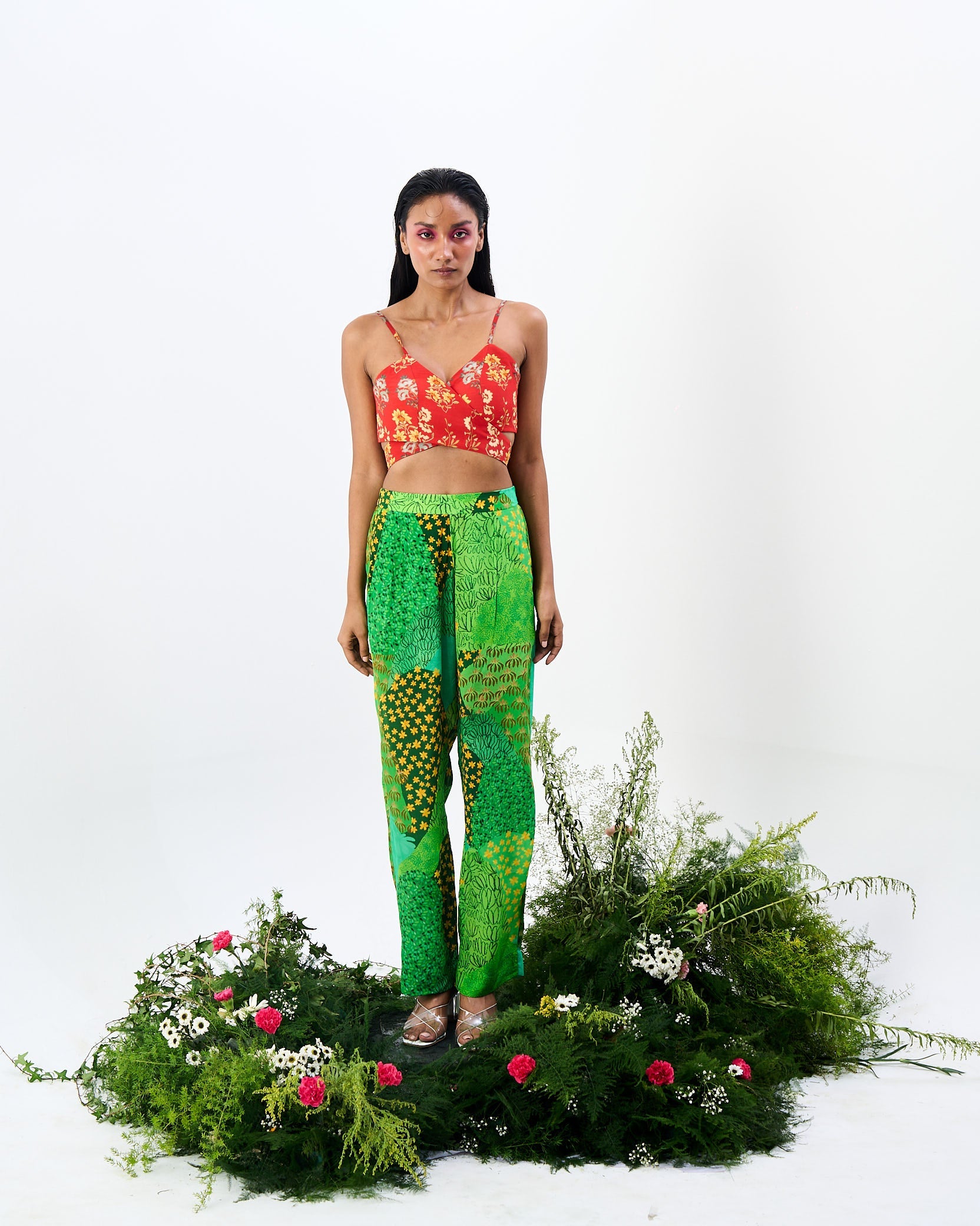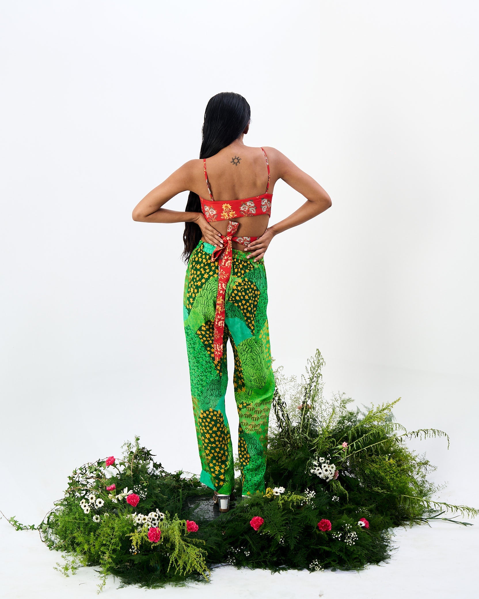The Ekshringi co-ord, with Mughal trees print high waisted pant and a vintage tapestry wrap top, is a beautiful and unique outfit that is sure to turn heads.
