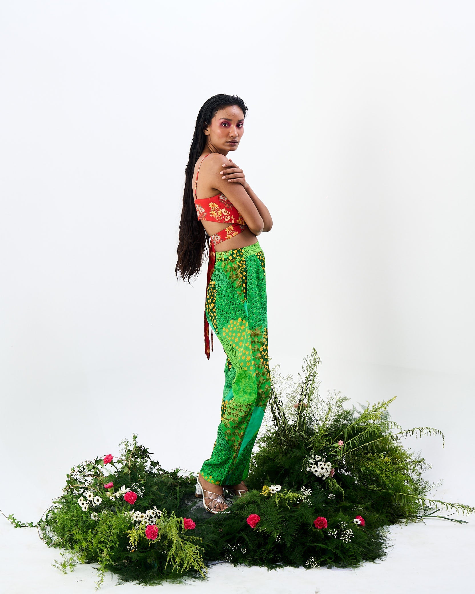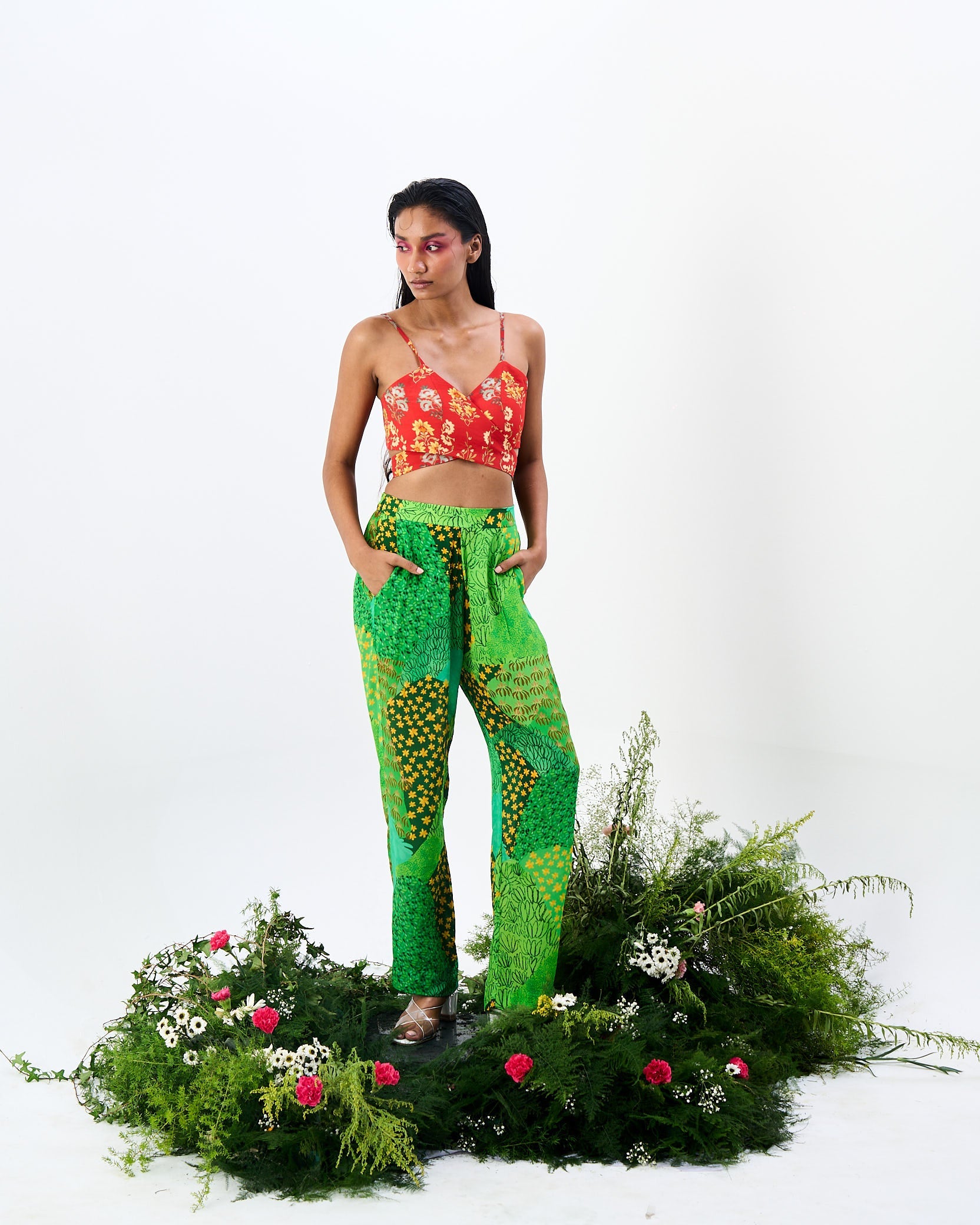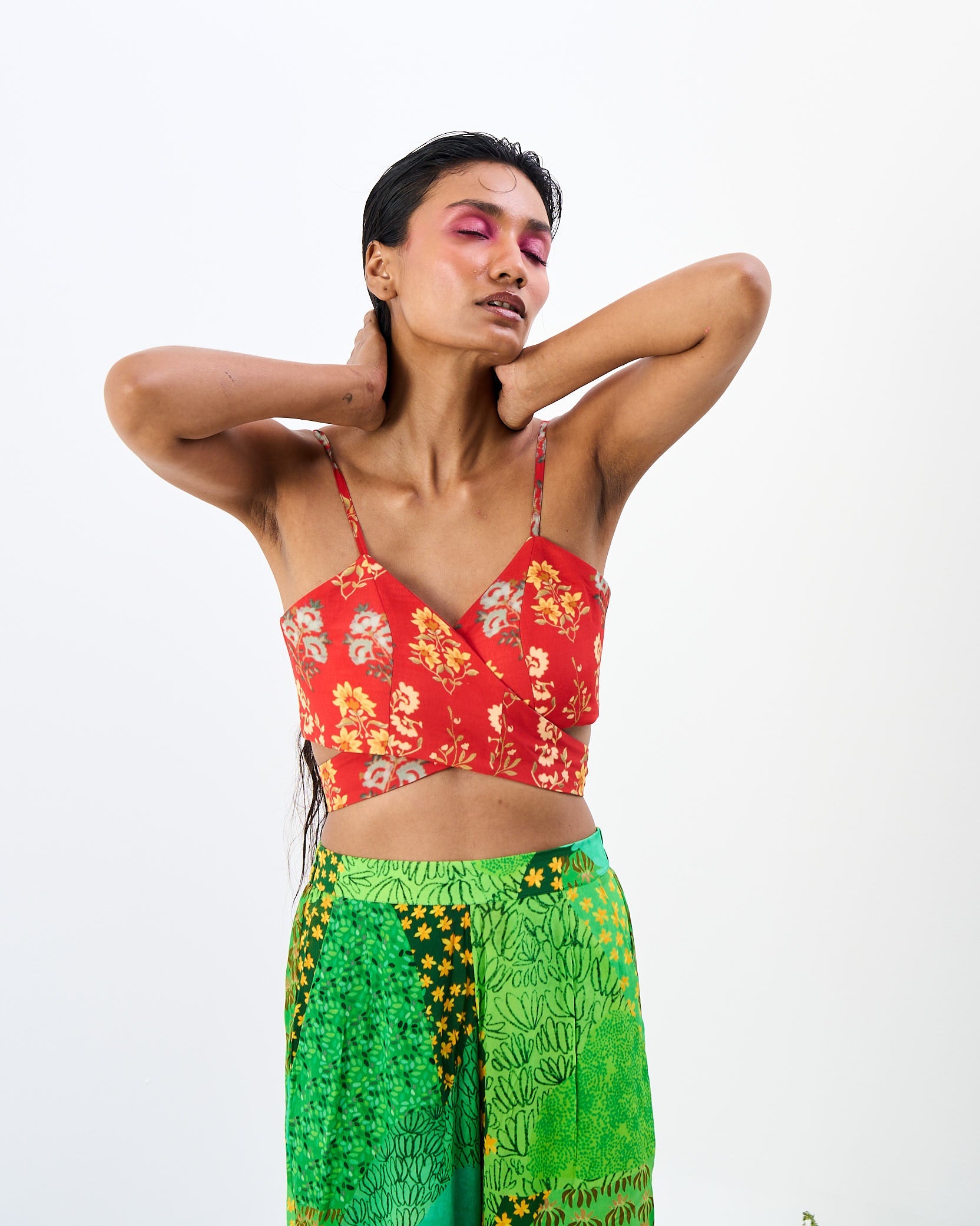 The Ekshringi co-ord, with Mughal trees print high waisted pant and a vintage tapestry wrap top, is a beautiful and unique outfit that is sure to turn heads.