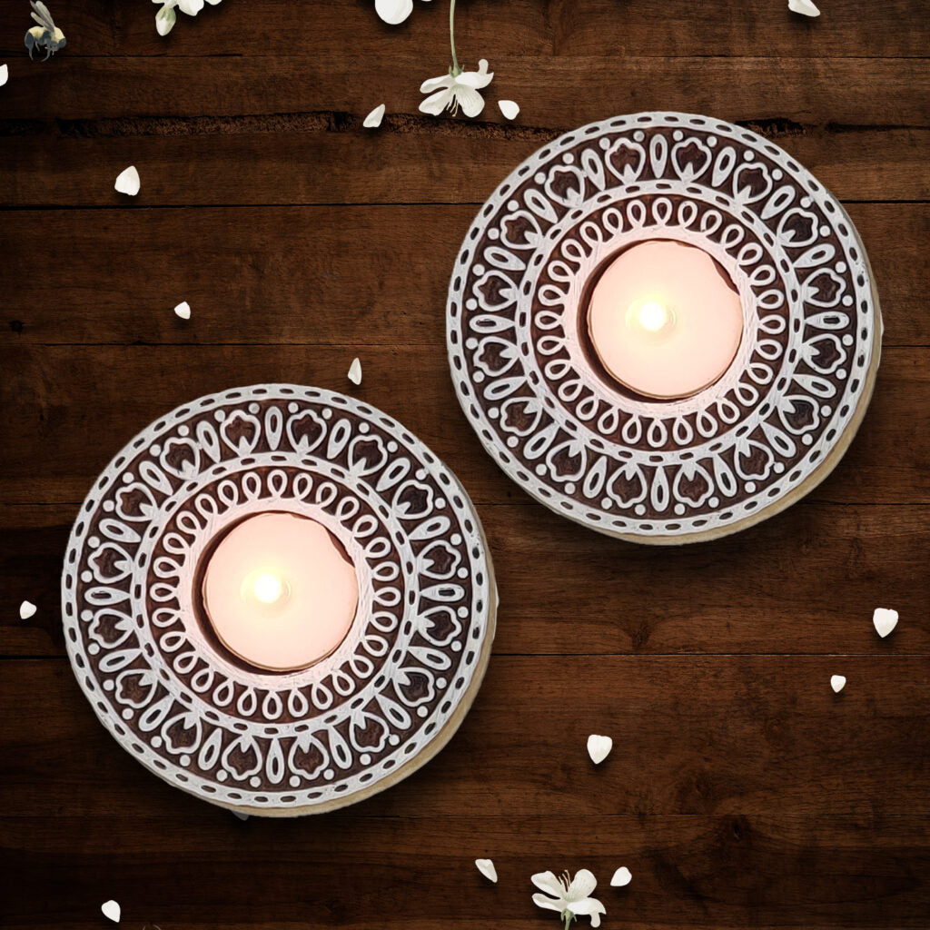 Hamper Contain: Recycled Cloth Diya Latkan, Wooden Jaipuri Block Tea Light Holder, Chocolate-Flavored Pudding and Wooden Small Suitcase (Organizer/Storage Box)