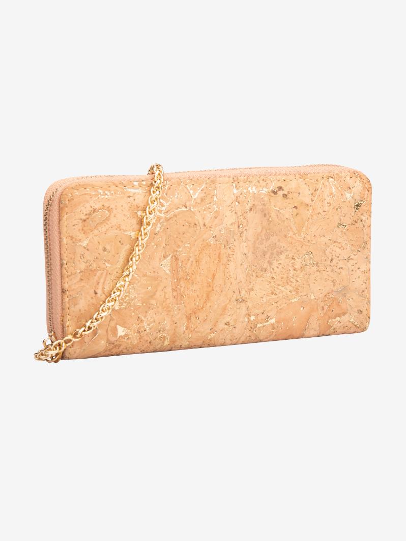 Golden Sands: Women's Beige and Gold Cork Wallet Purse
