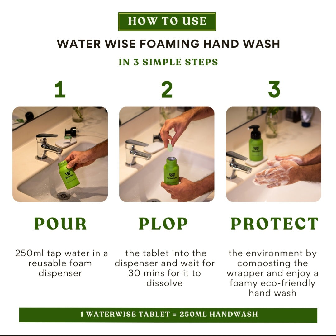 - CRAFTED FOR THE ECO-CONSCIOUS CONSUMER: Introducing Waterwise's Foaming Handwash Refill Tablets. Each concentrated Smart Tablet dissolves in your tap water to make 250 ML of foaming hand wash that lasts 30 - 45 days with frequent usage.