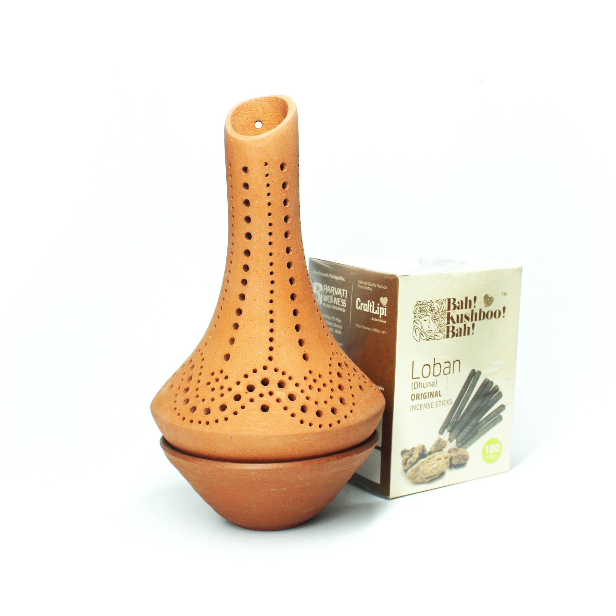 This Combo pack contains : 1 incense stick stand with designed cover (handmade terracotta) and 100 pcs handmade dhuna sticks. Only Agarbatti / Dhuna sticks are also available for repeat usage / next purchase when you don't have to but the stand.