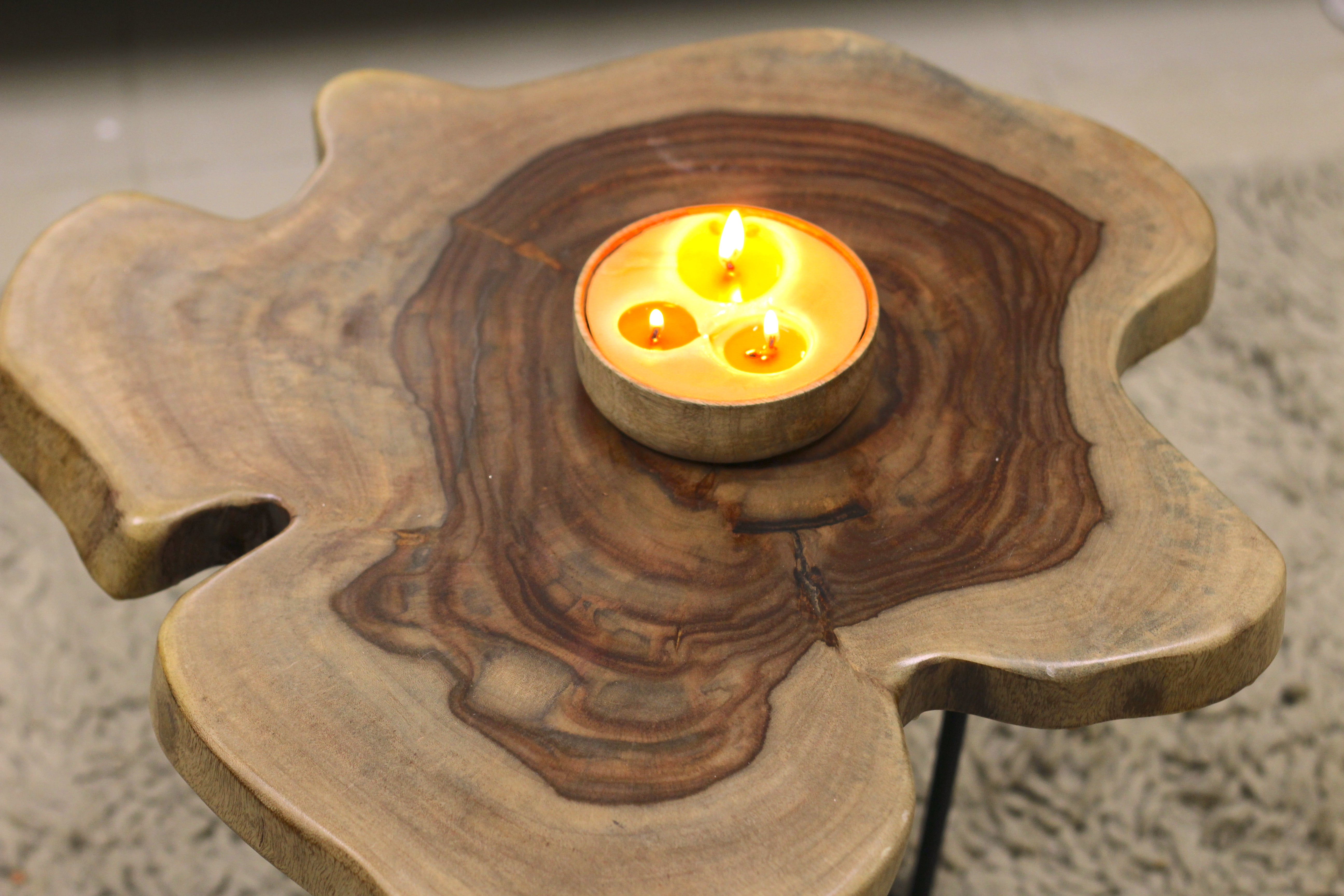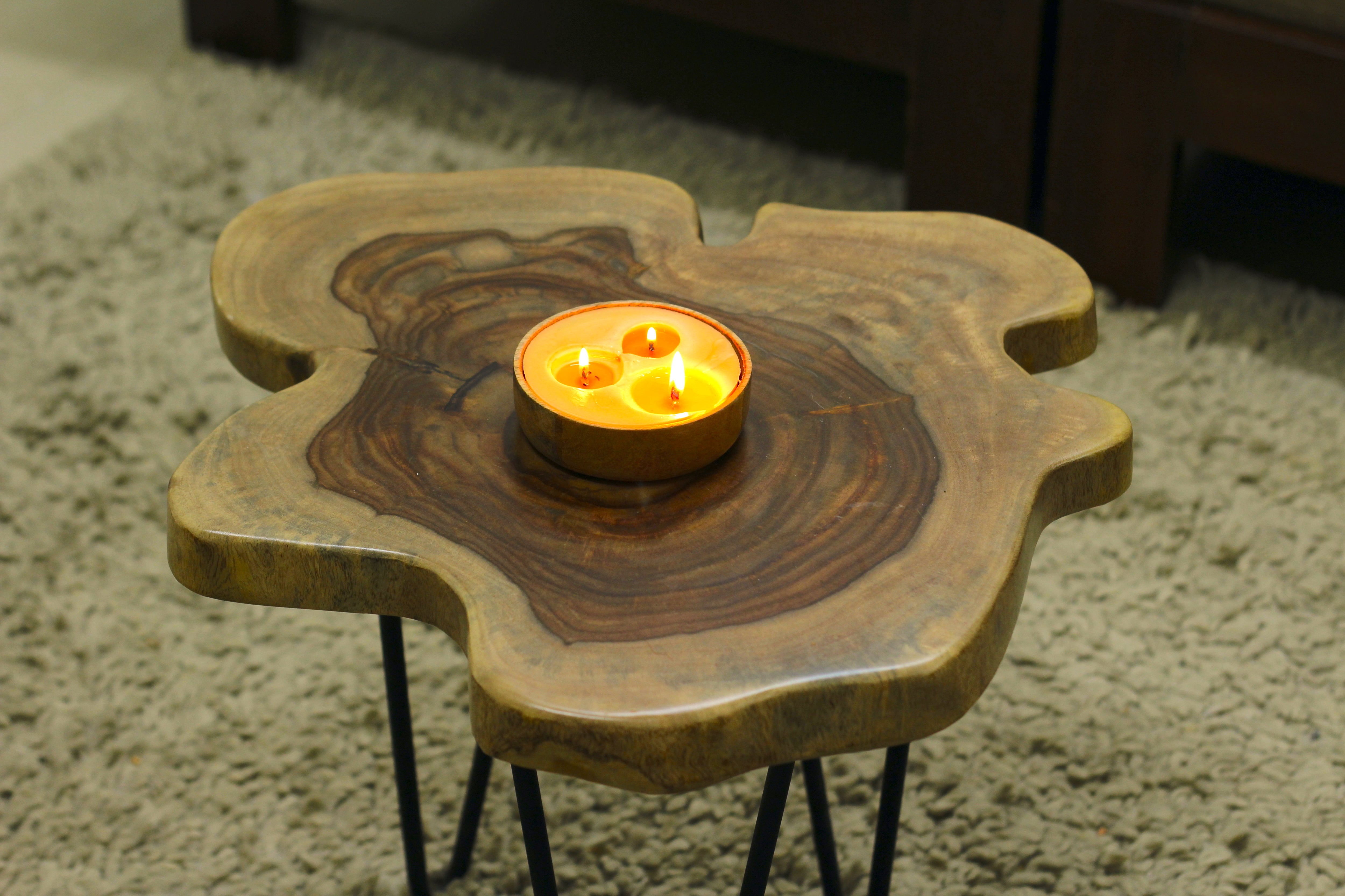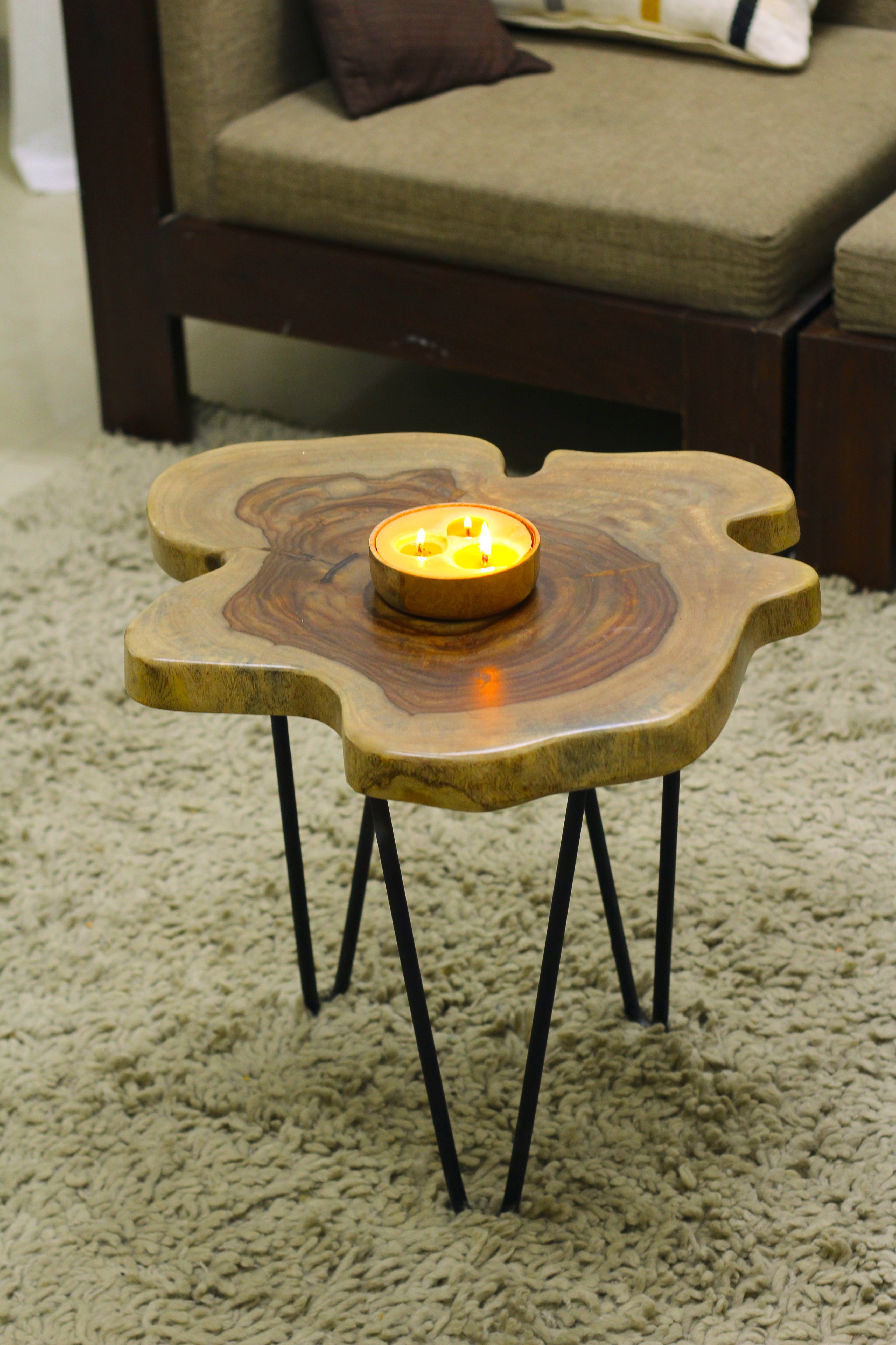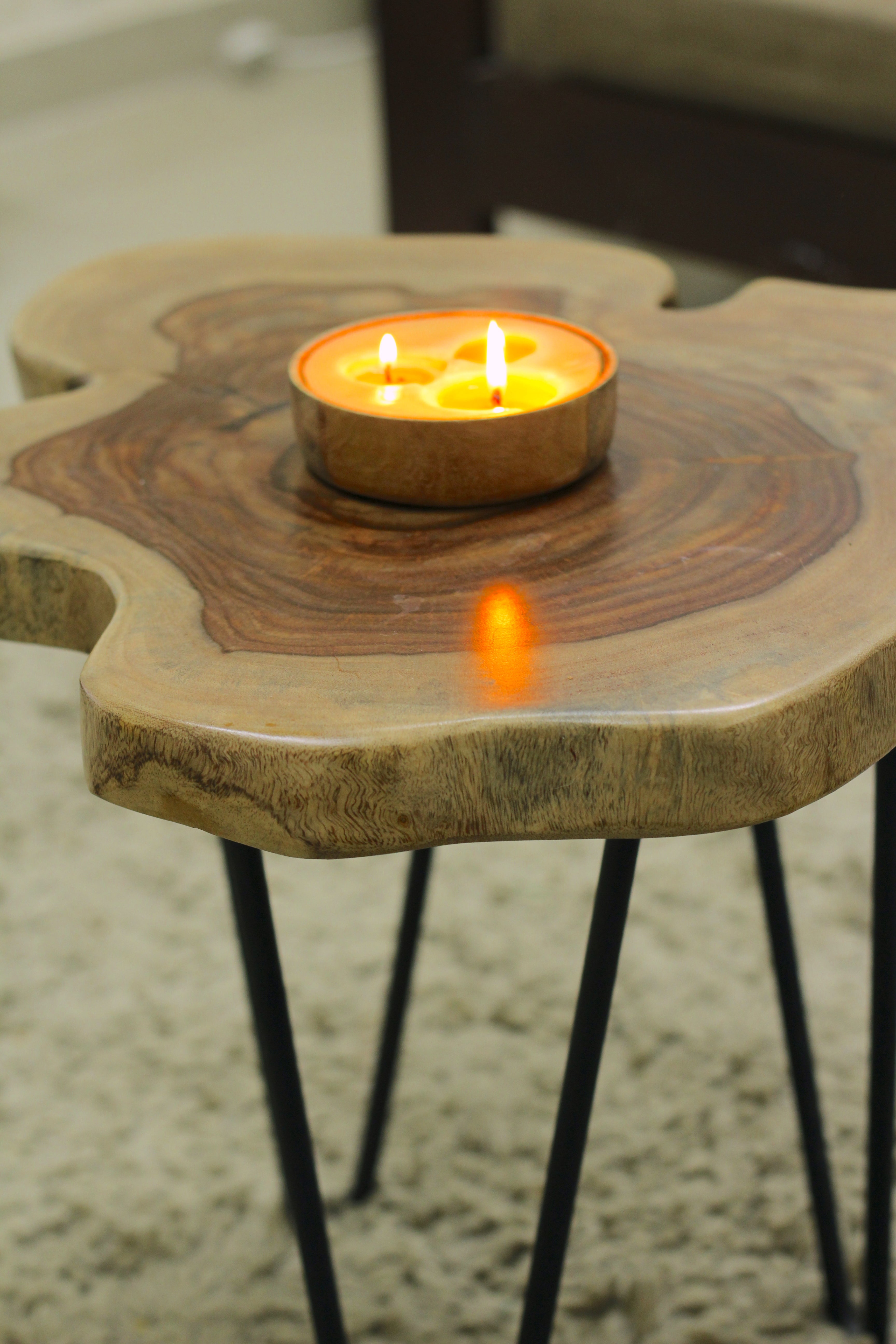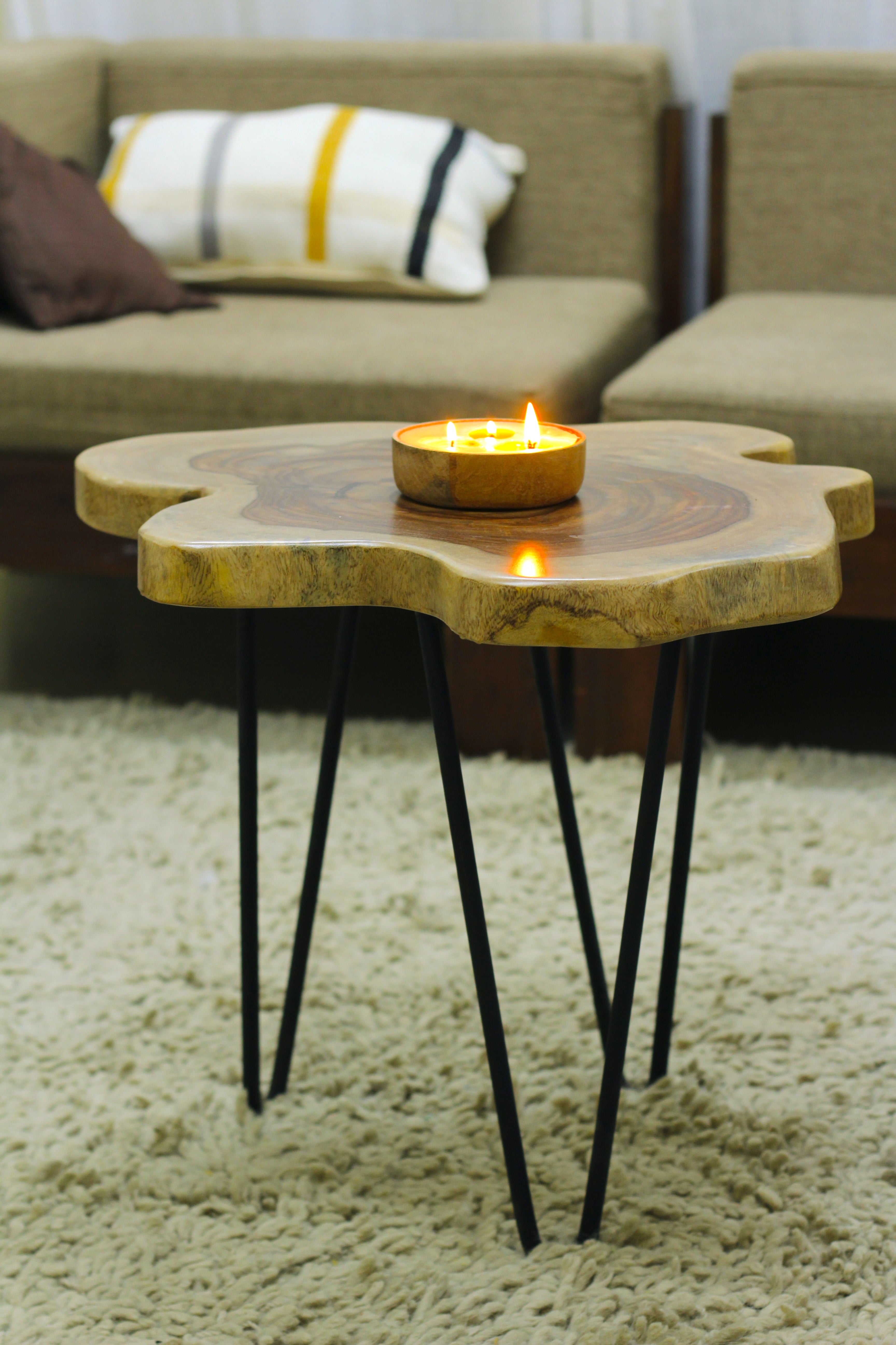 Live Edge Side Table | Sheesham Wood with Hairpin Legs (18 inch Diameter * 18 Inch Height)