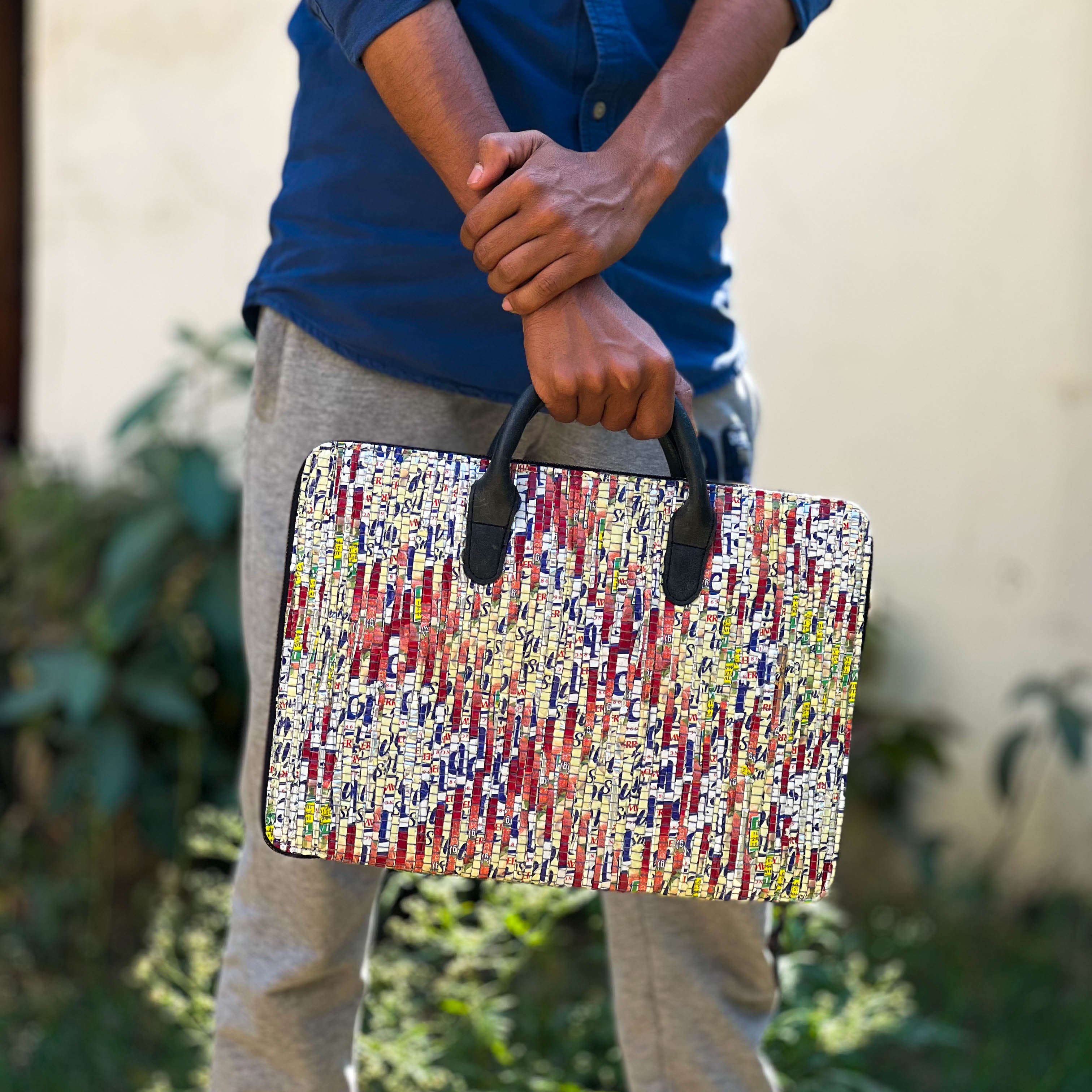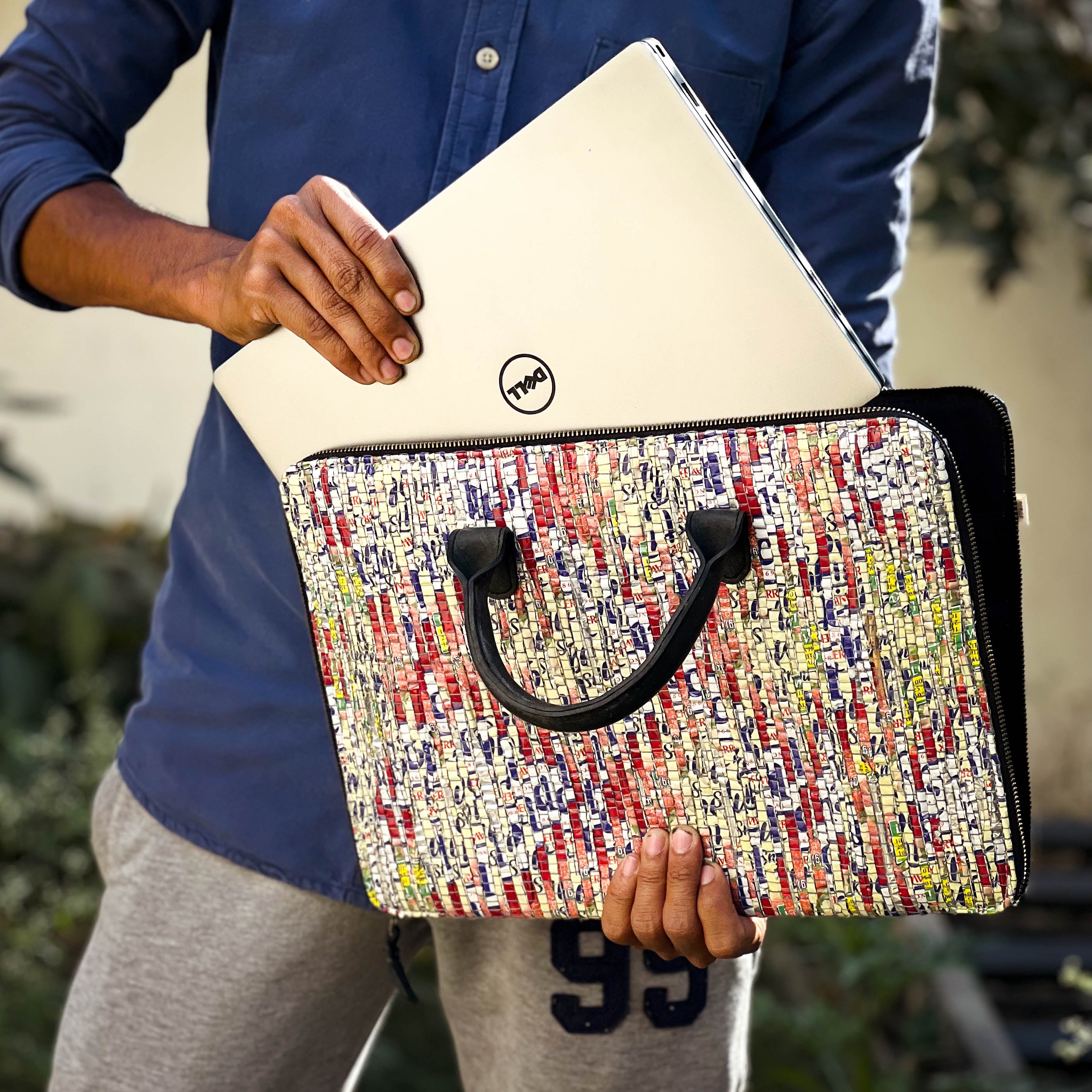 Minimalist Laptop Sleeve Bag | Upcycled Plastic | Handloom Textile | Water-Resistant | Scrapshala
