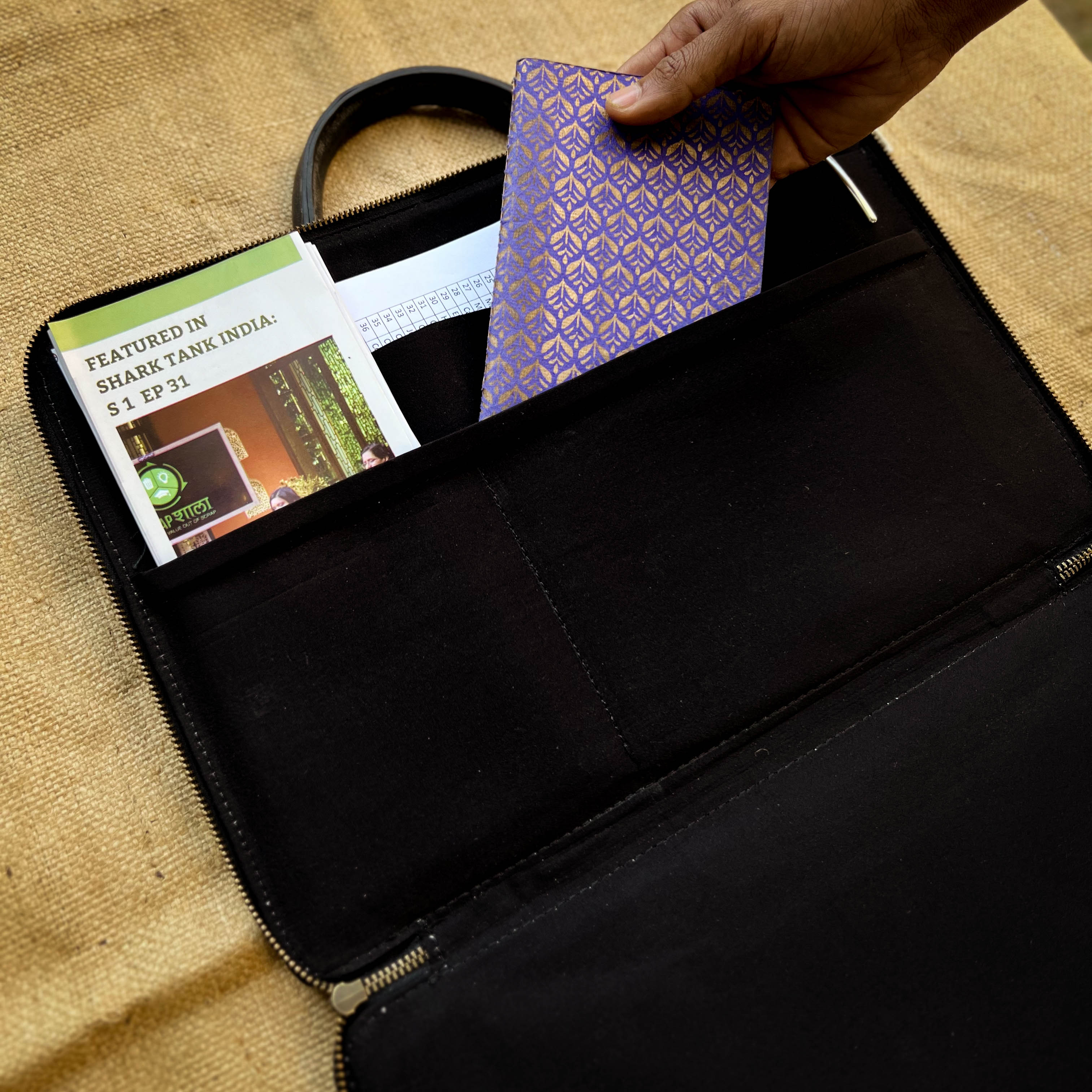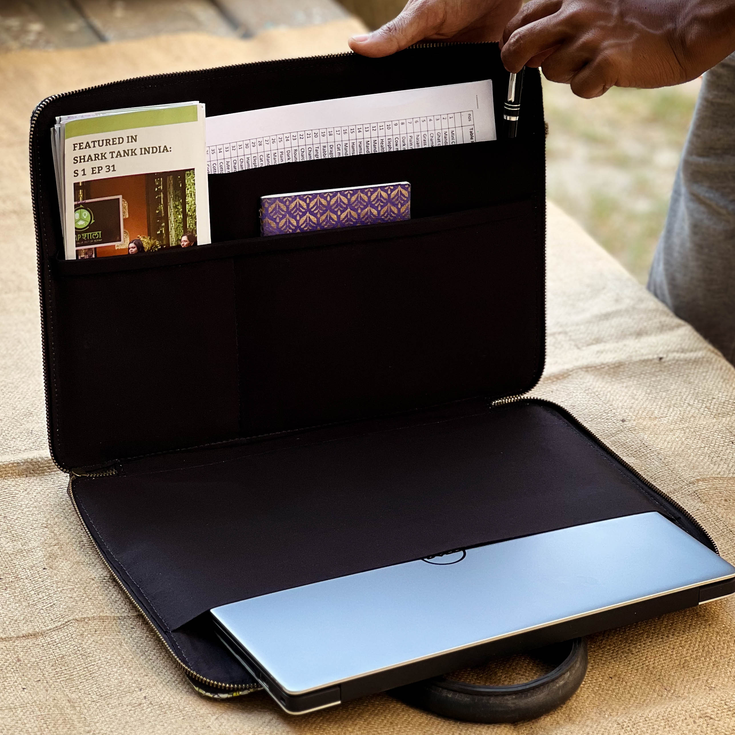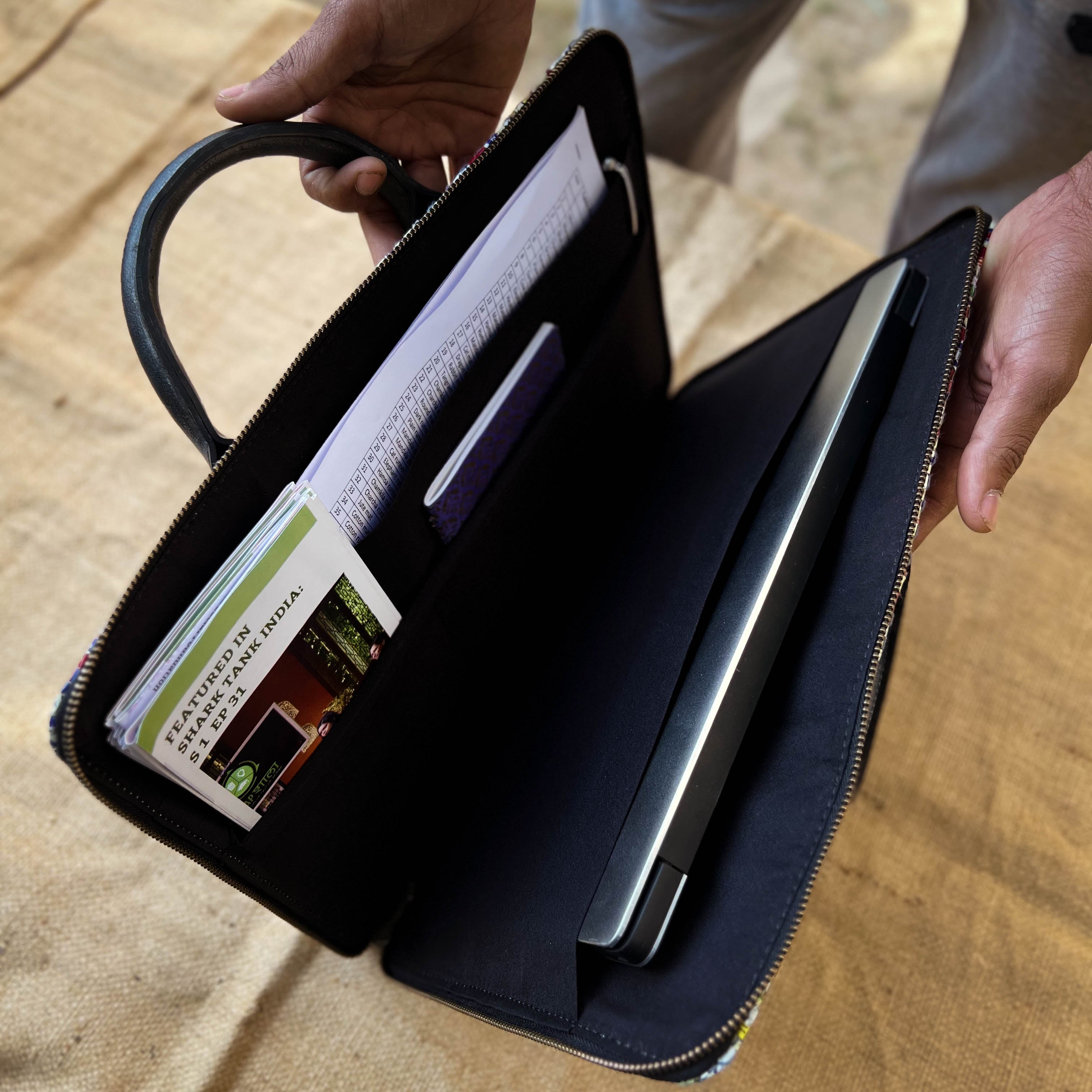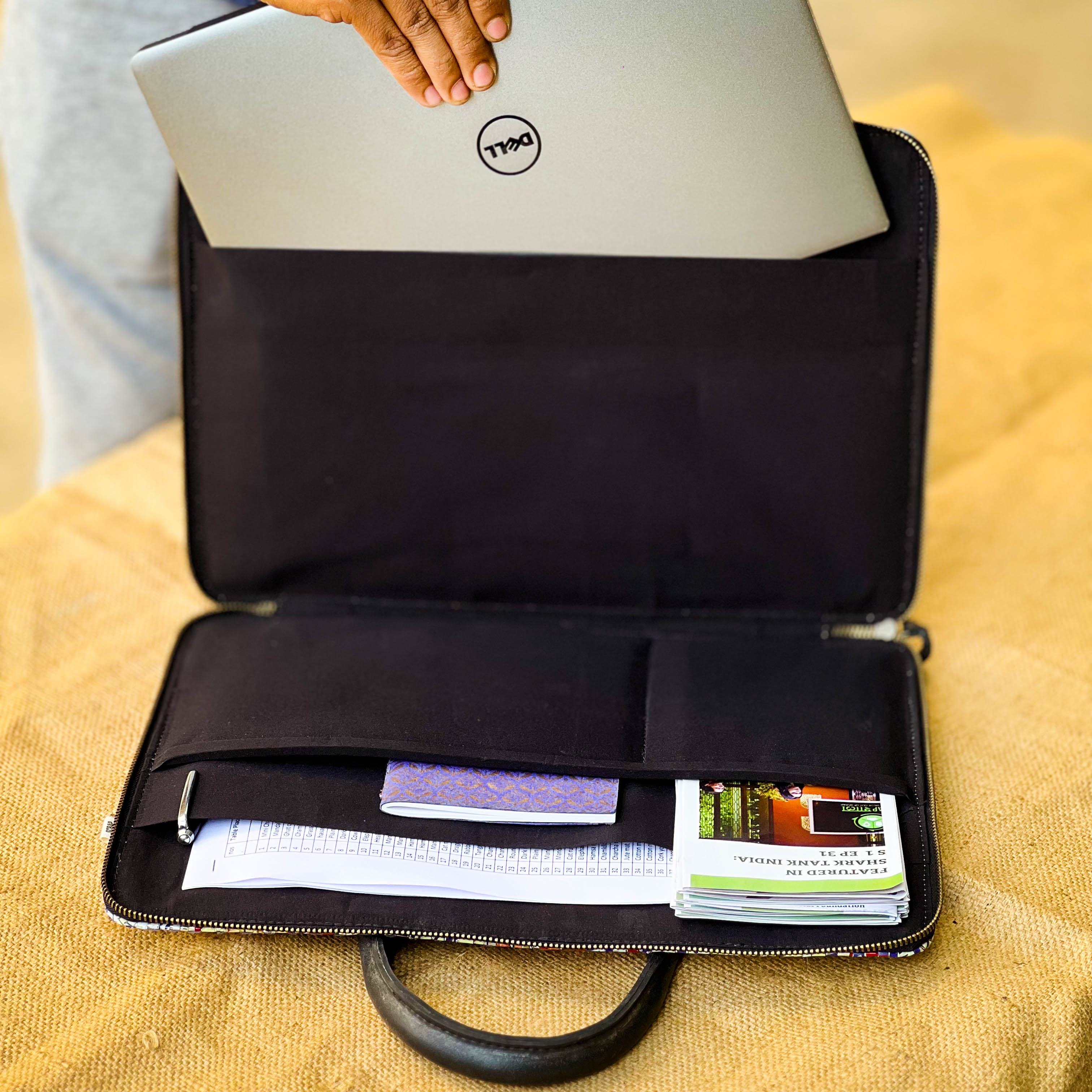 The Minimalist Laptop Bag by Scrapshala is lightweight, sleek and travel friendly, designed especially to hold your laptop, files, diary, phone and cards in one place at your ease.
