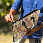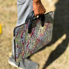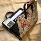 The Chamkila textile is then handstitched into this highly functional and stylish product like this bag!