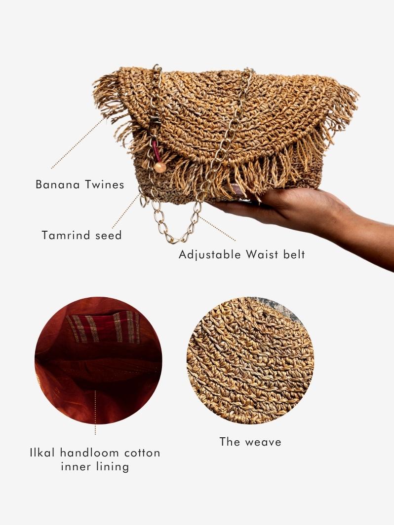 Our exquisite New Moon Crest Bag is an embodiment of cuteness, practicality, style, and eco-consciousness. This versatile bag effortlessly transitions between clutch, sling bag, and fanny pack waist bag, adapting to your every need and occasion.