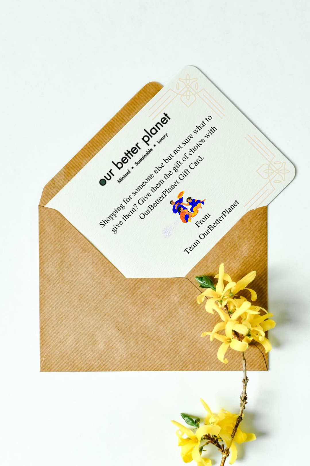 Not sure what to gift? Give your loved ones the freedom to choose with the OurBetterPlanet Gift Card. Curated for convenience and personal touch, each gift card includes: