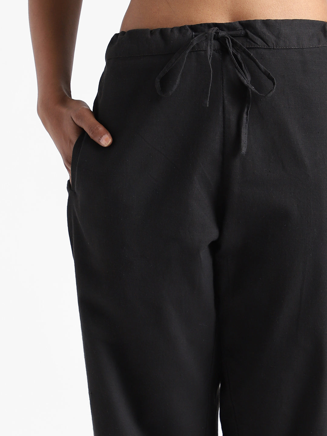 It has an elastic rubber waistband with drawstring closure, slant pockets, mid-rise & a relaxed fit. You could pair it up with a Kurti, top, or a tee. It could also be used as your Yoga wear or night wear since they are super comfortable and healthy.