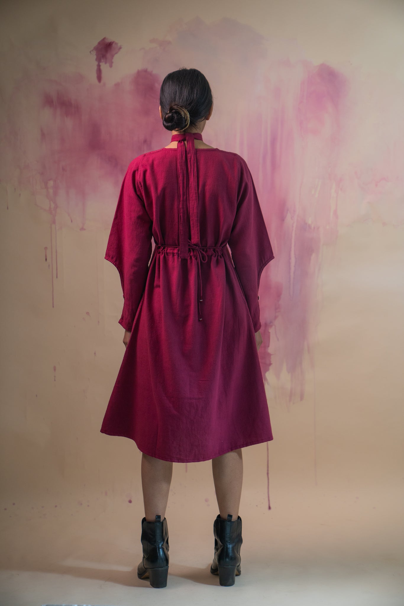 Crafted from 100% cotton fibers and natural materials. This Kala Cotton Asymmetrical Dress comes in a calm and soothing colour that we call Fire Brick naturally dyed from a host of ingredients ranging from madder root to onion peel.