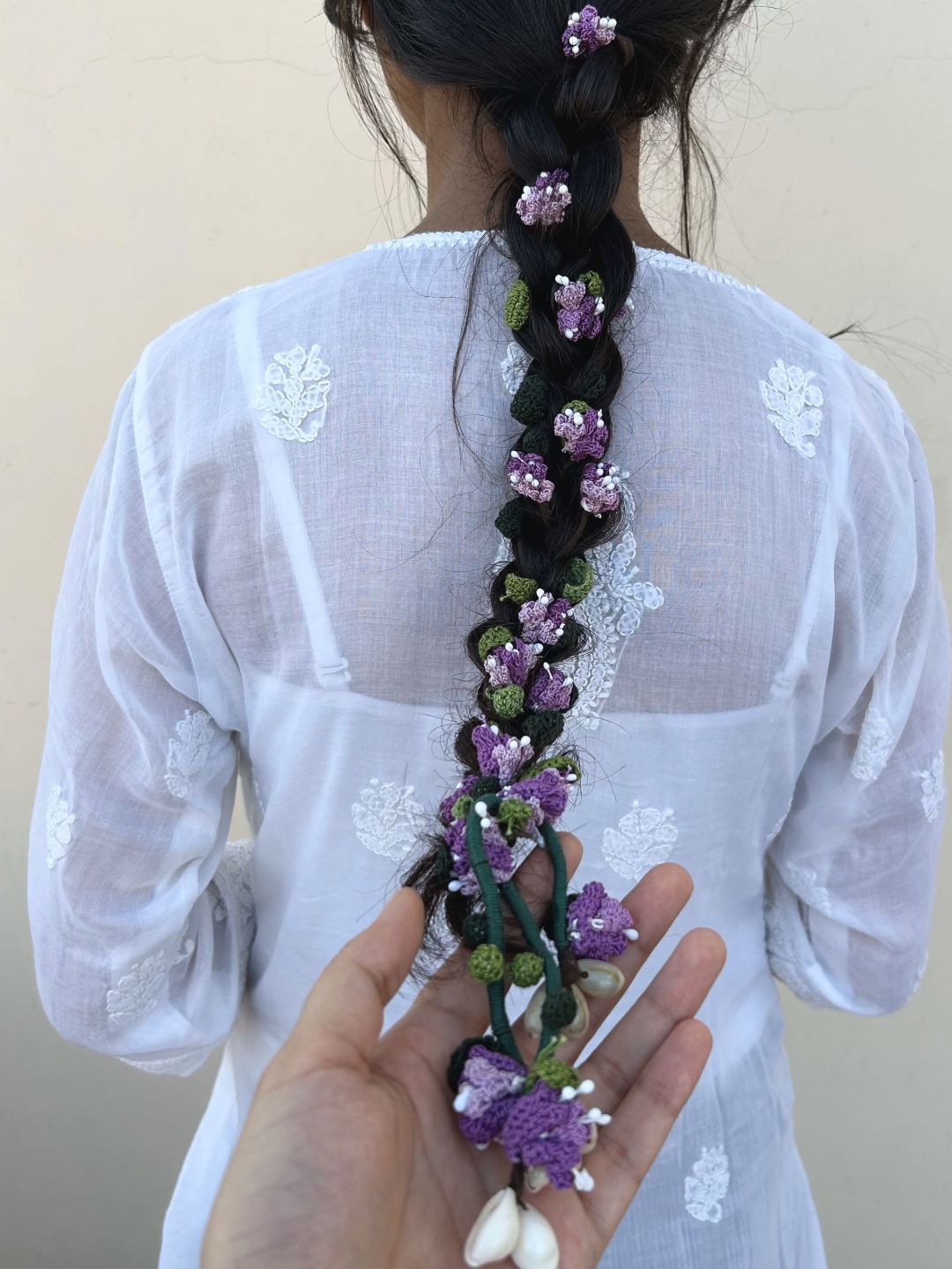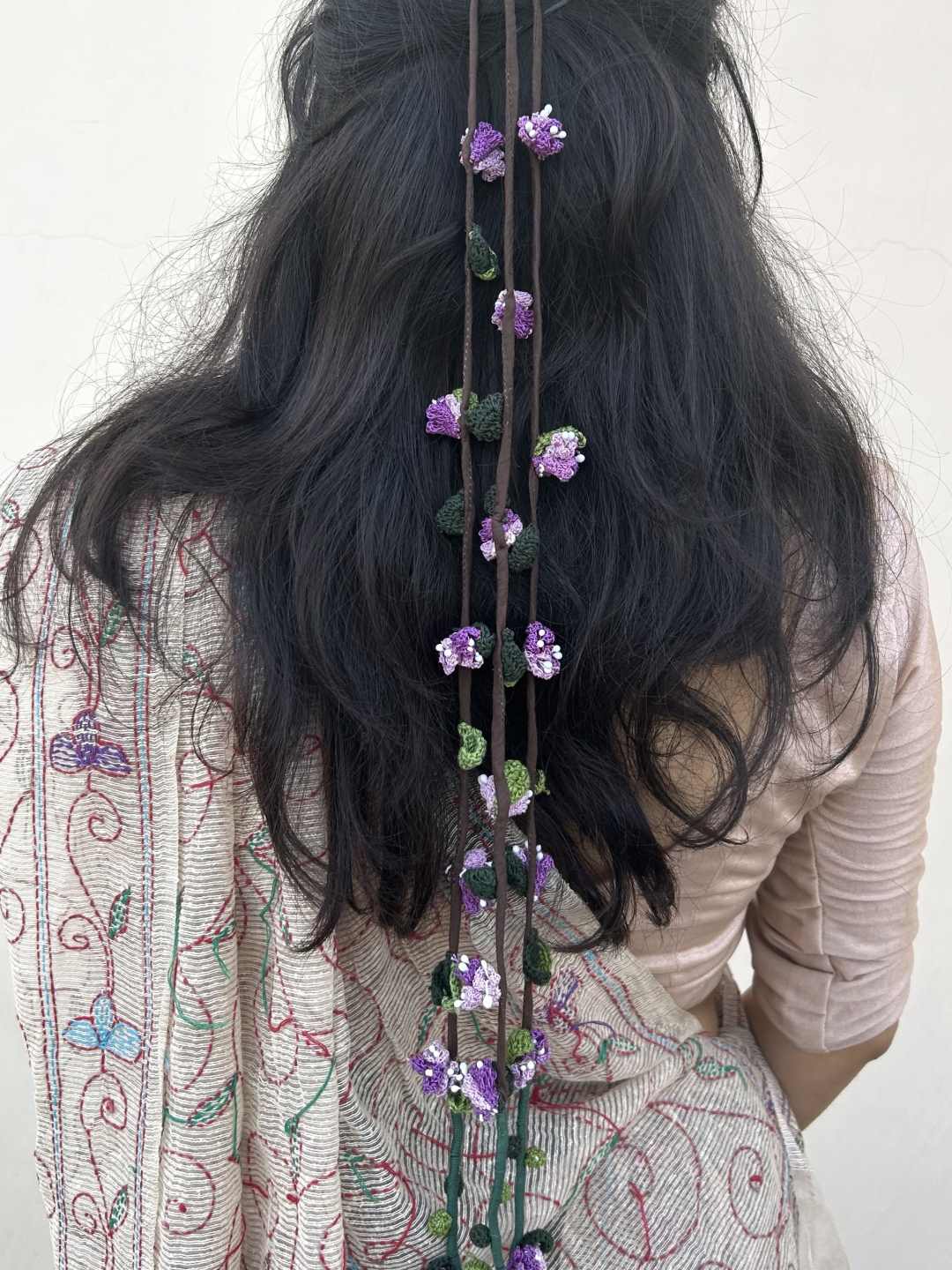 Made with care by local women artisans. The parandi can be braided as well as wrapped over a bun or a ponytail too. It can be styled simply with hair down by a hair clip. It is a perfect addition for both Indian as well as Western attire.