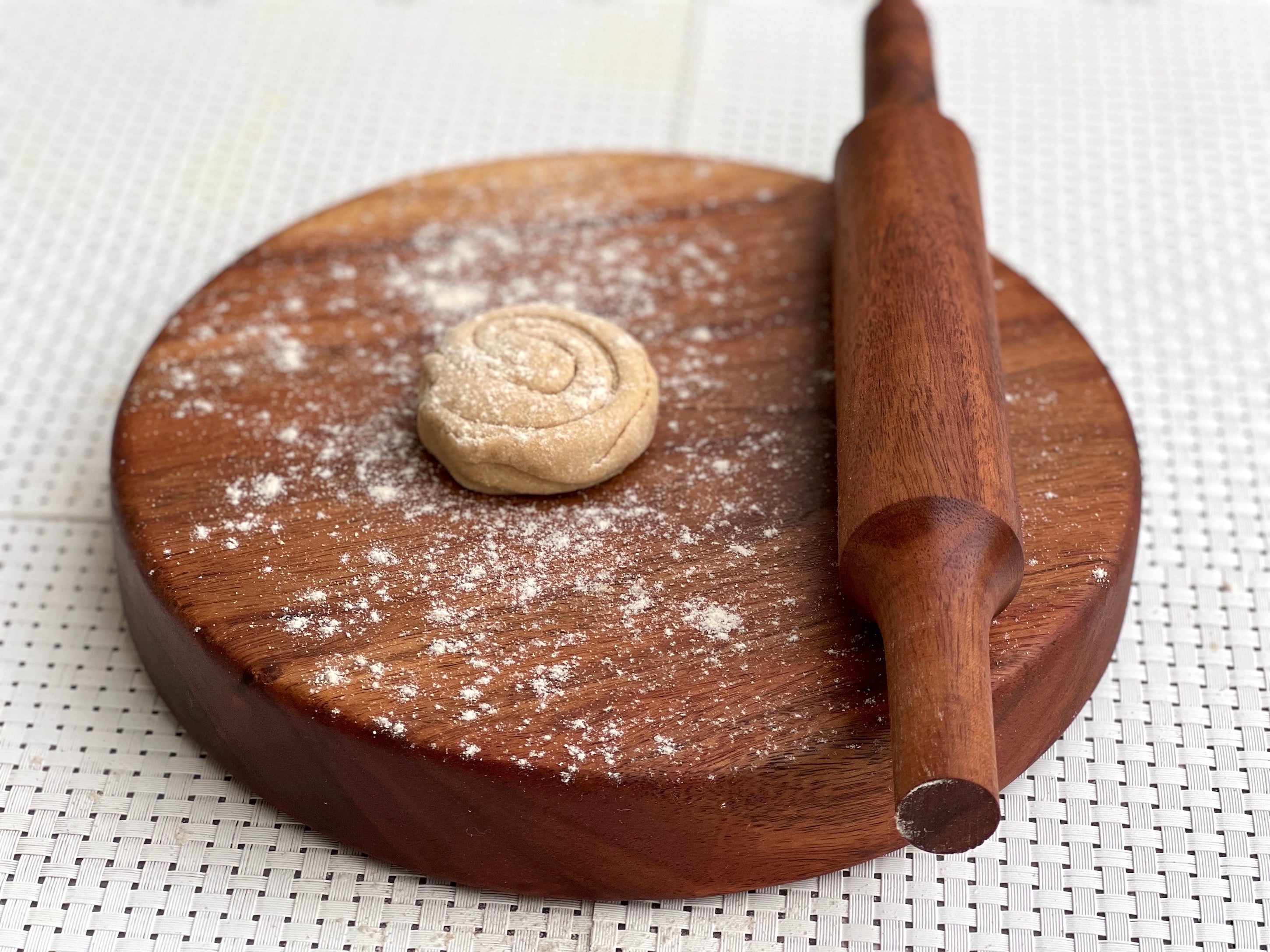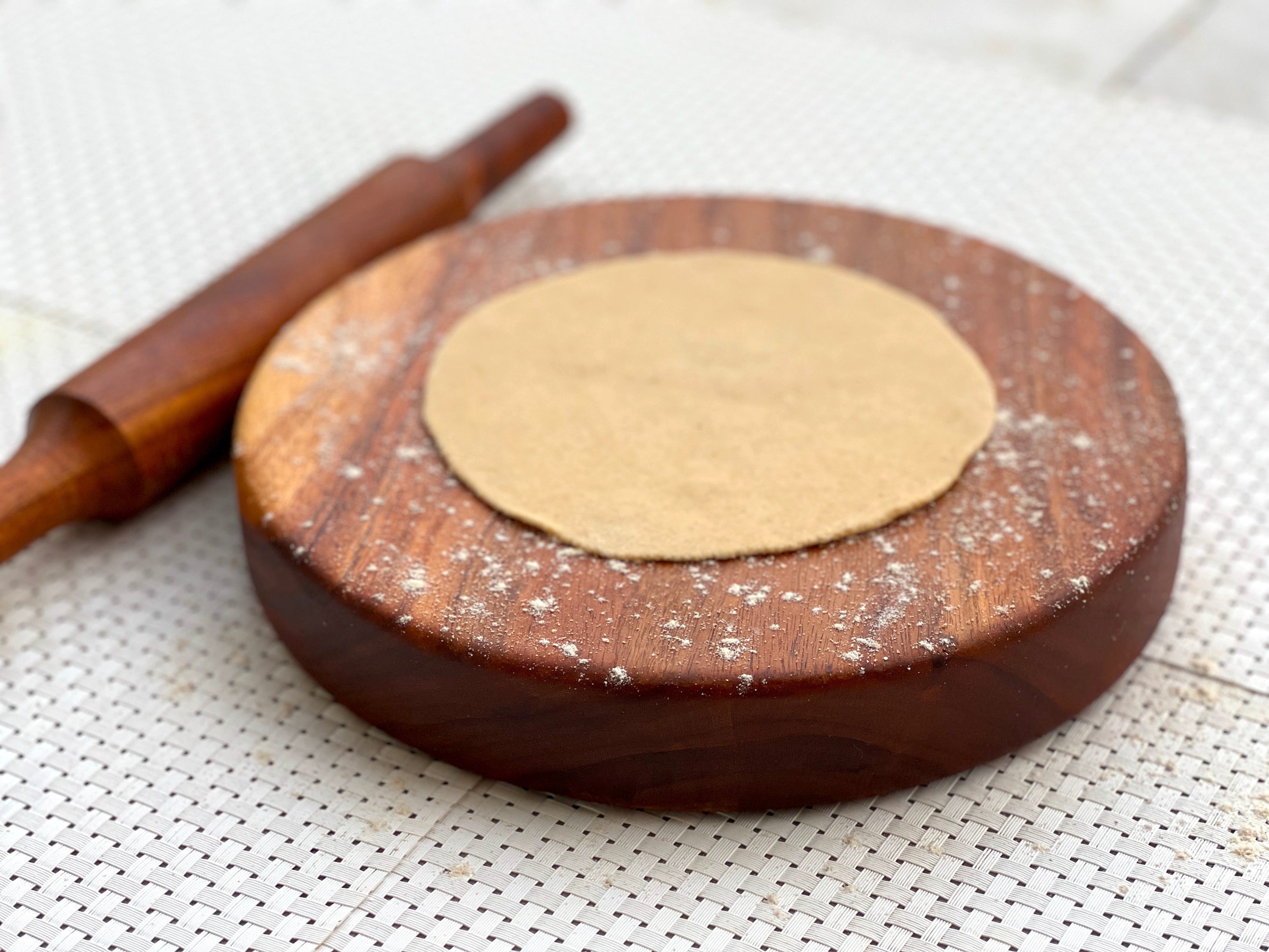 Single Piece Mango Wood Rolling Board with Pin (9.5 inch diameter * 1.5 inch)
