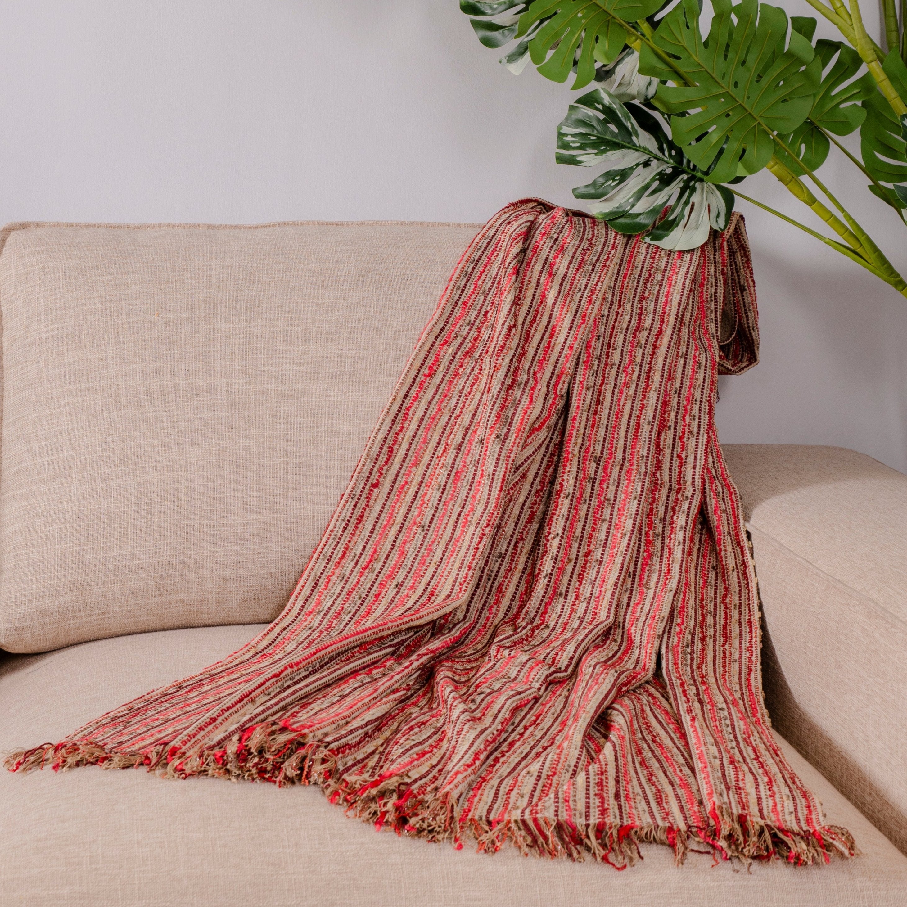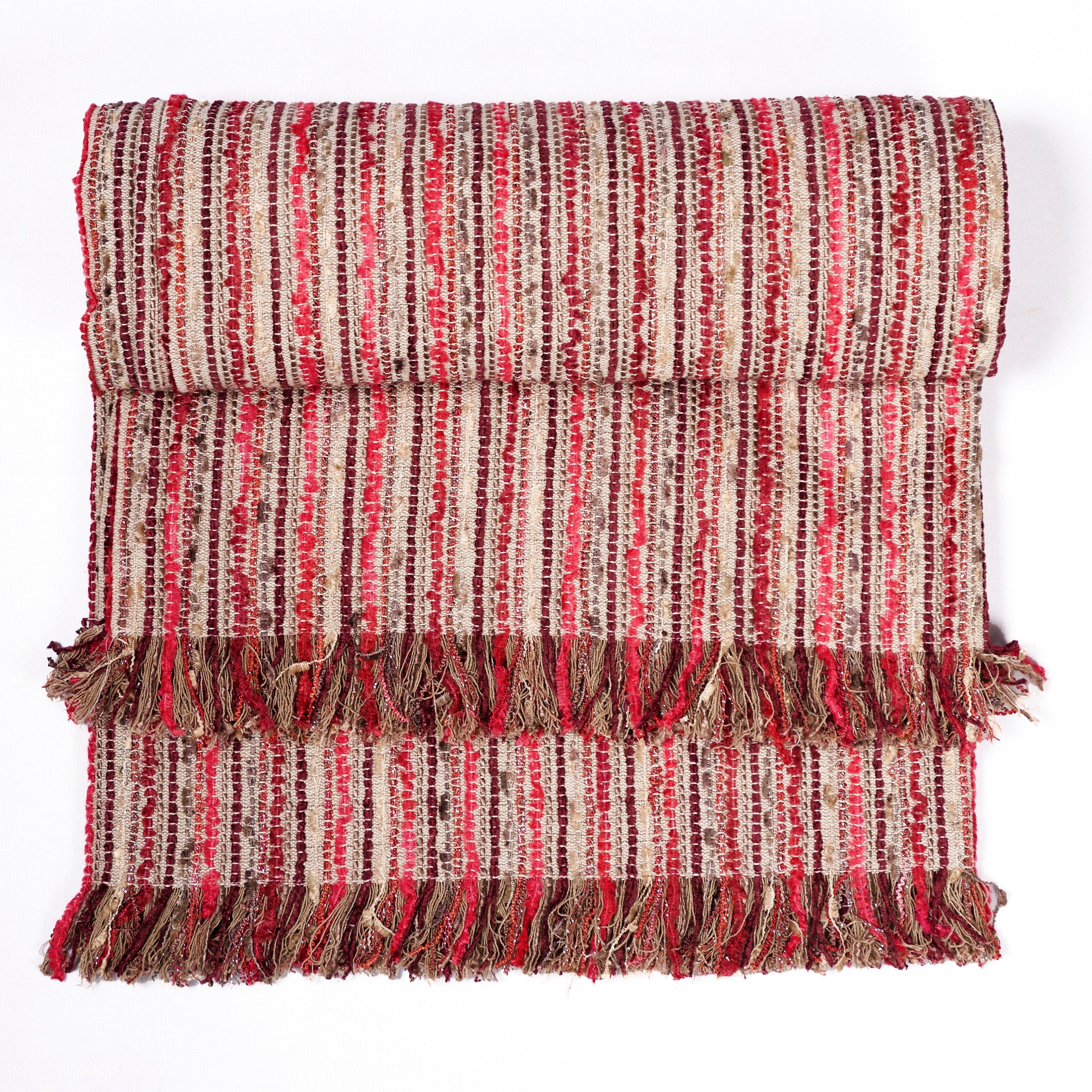 This handwoven tweed throw combines different bouclé yarns to create a striking stripe pattern, blending rich textures with bold design. Finished with beautiful self-fringes, it adds a refined yet cozy touch to your space. Perfect for layering on a bed or draping over a sofa, this throw brings effortless style and warmth to any room.