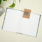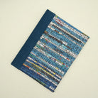 The blue hardbound cover of the diary is handcrafted from flagship handloom textile made from old newspapers/magazines and old denim strip is added on one side to enhance the look.