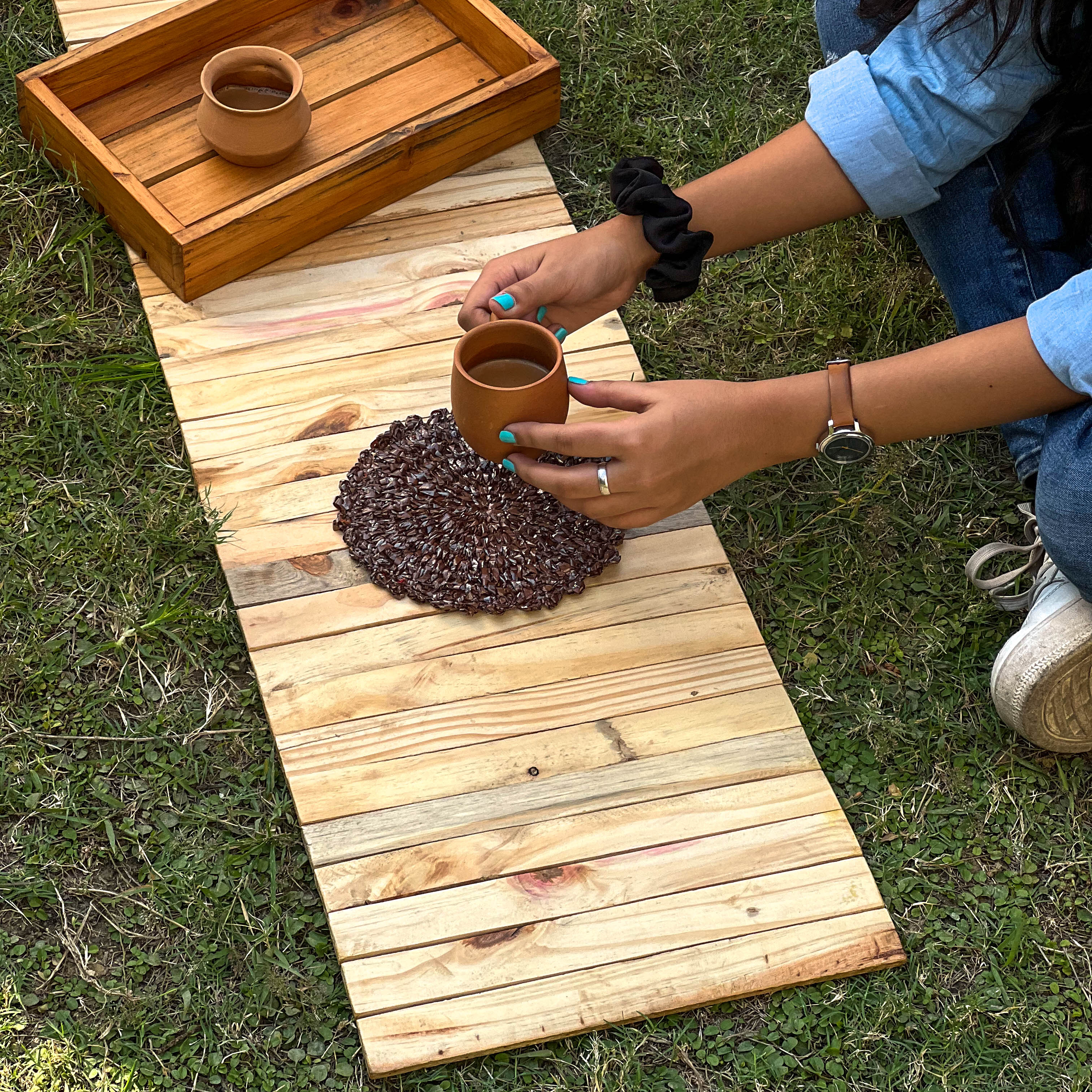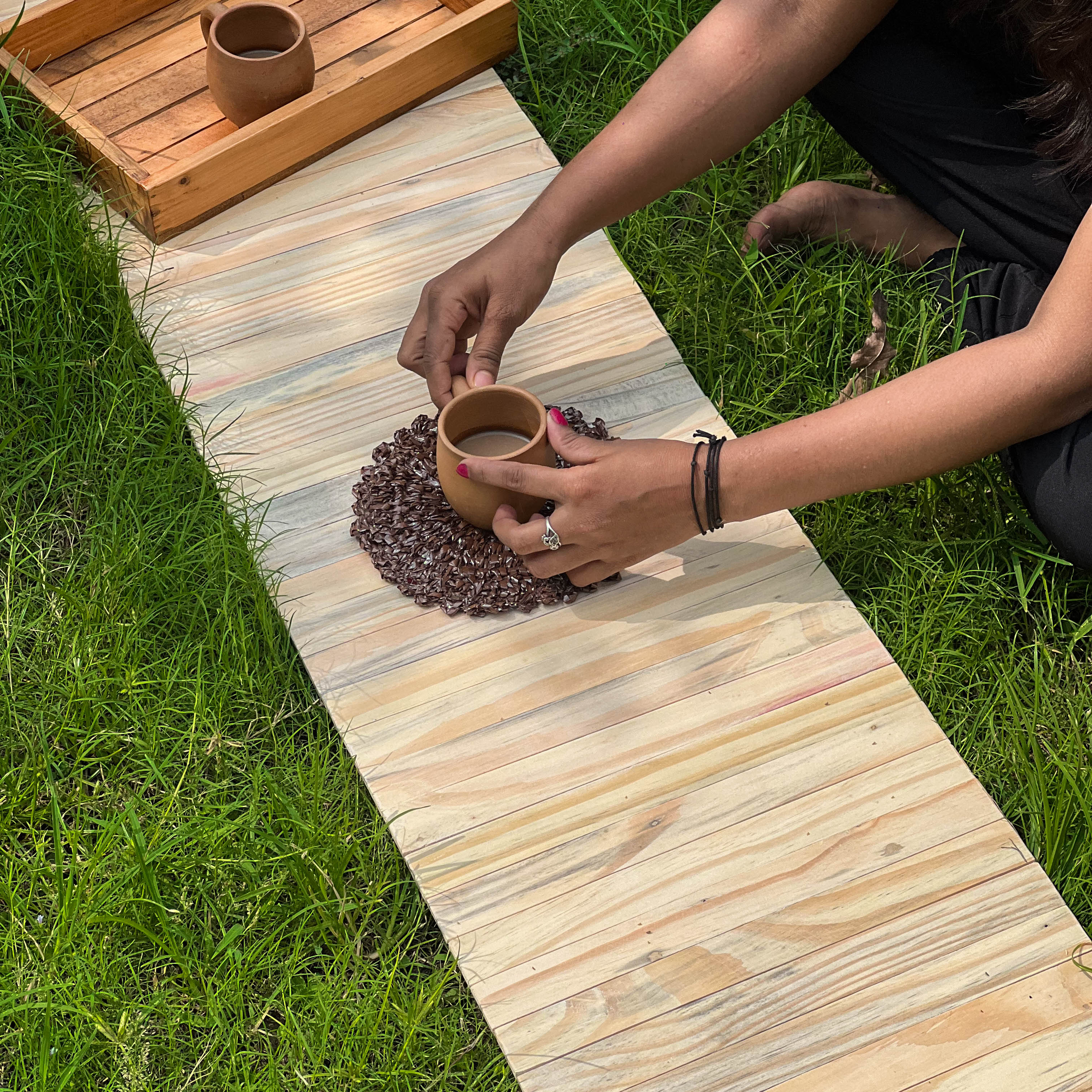 The Salvage Runner Placement by Scrapshala is specifically designed to elevate the look of your table and save it from food stains. This natural pine wooden table mat is multifunctional, light in weight, foldable, and sturdy in design.