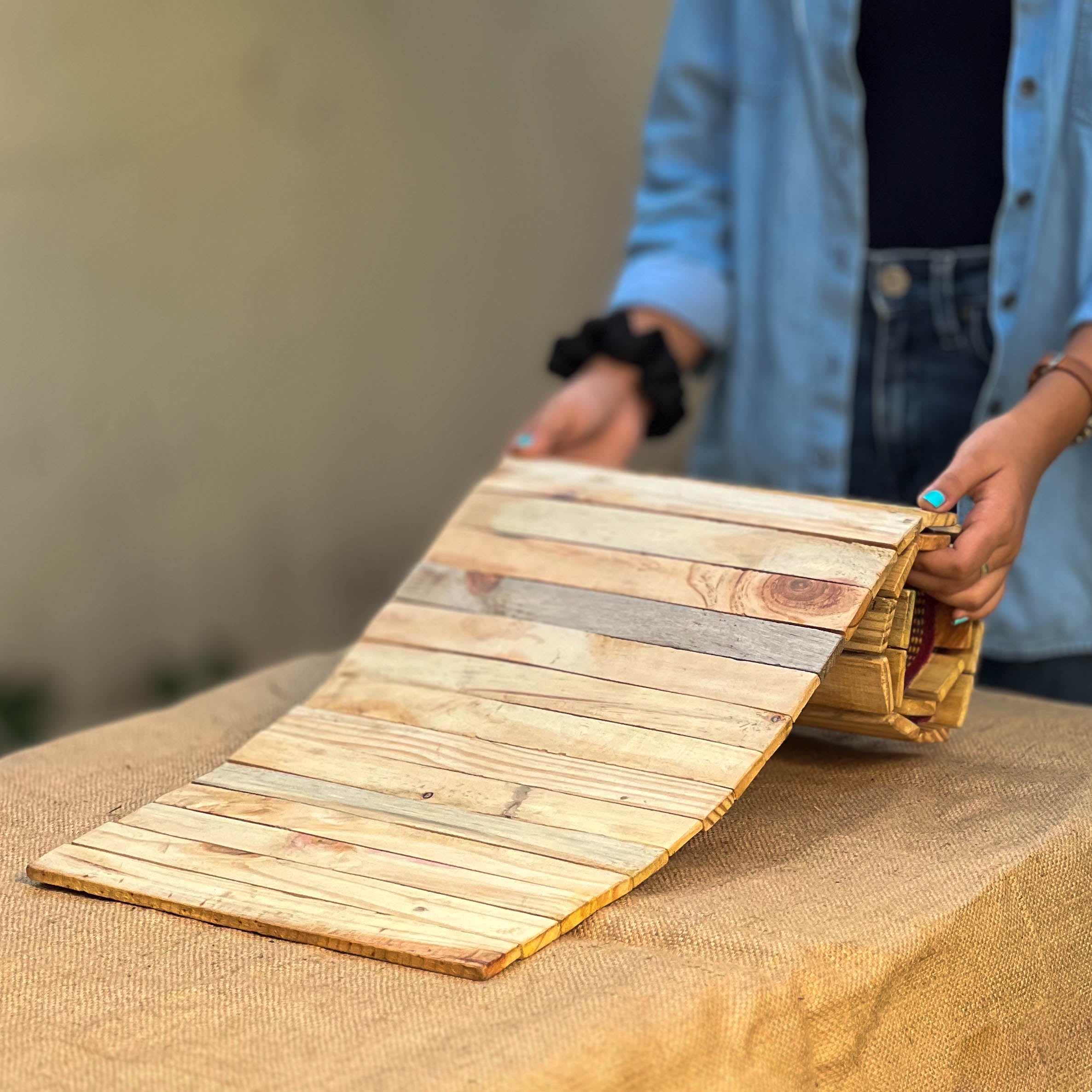 Wooden Runner Place Mat | Multipurpose | Natural Pine Colour | Foldable | Stain-Proof | Scrapshala