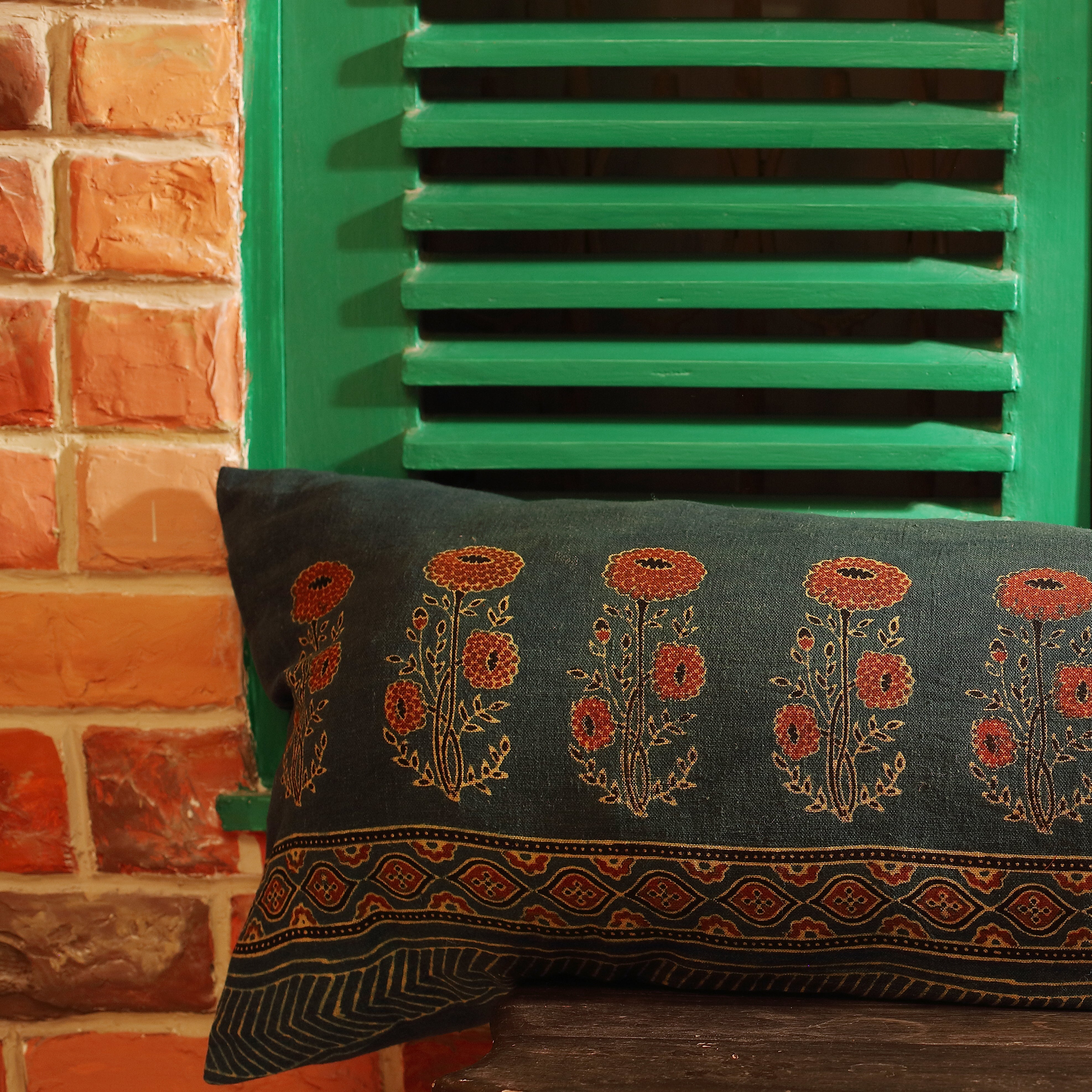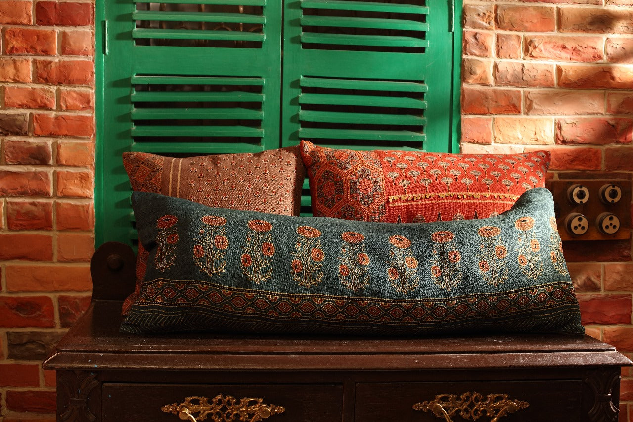 Ajrak Brick Handcrafted Organic Cotton Cushion cover (16" x 16")
