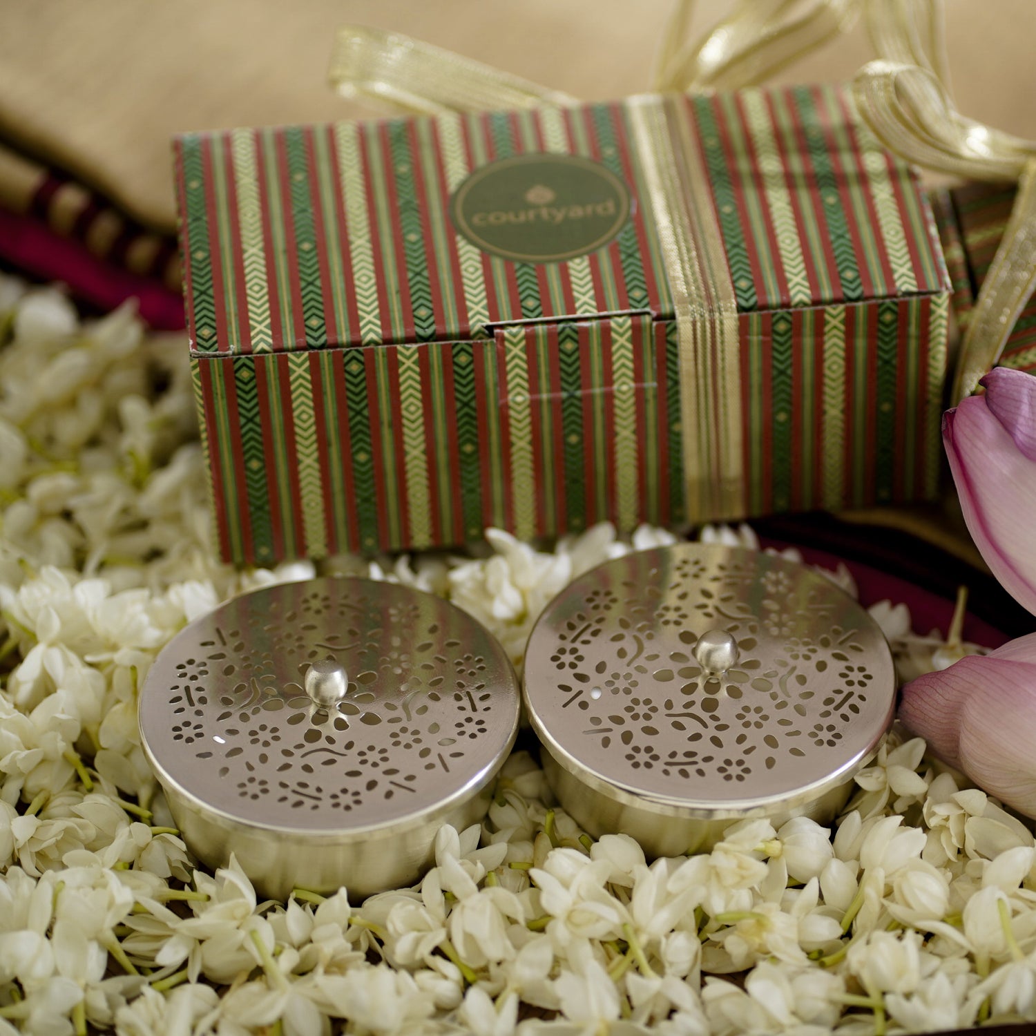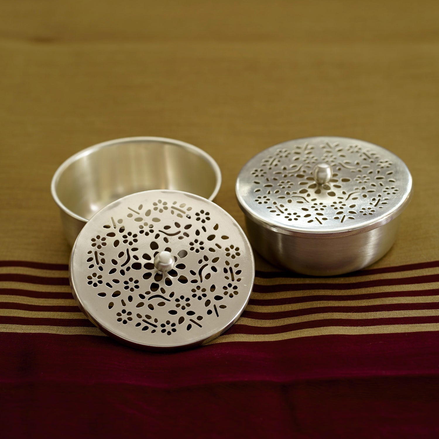 - Silverplated & Brass Finish – Exquisitely crafted nut boxes in finely deep-etched brass, dipped in silver for a luxurious appeal.