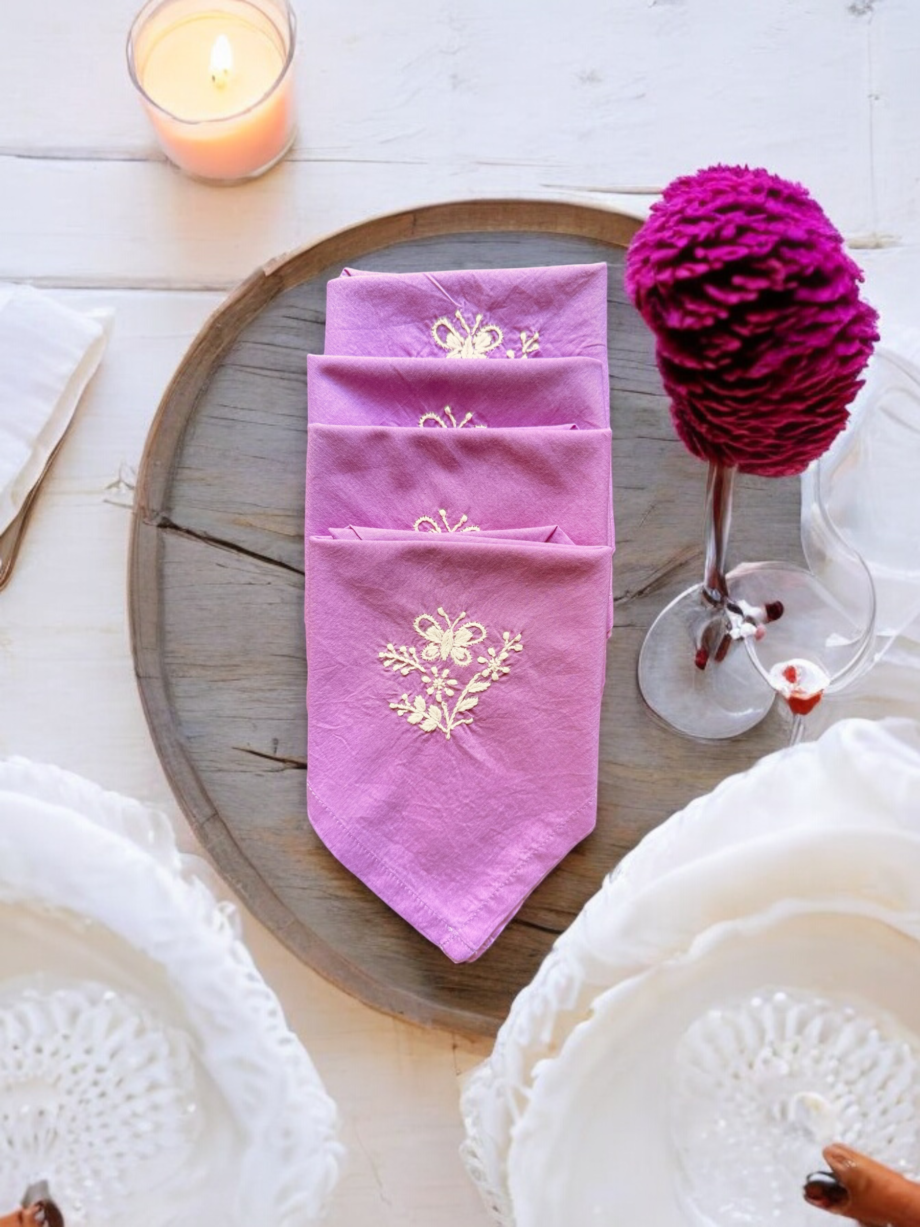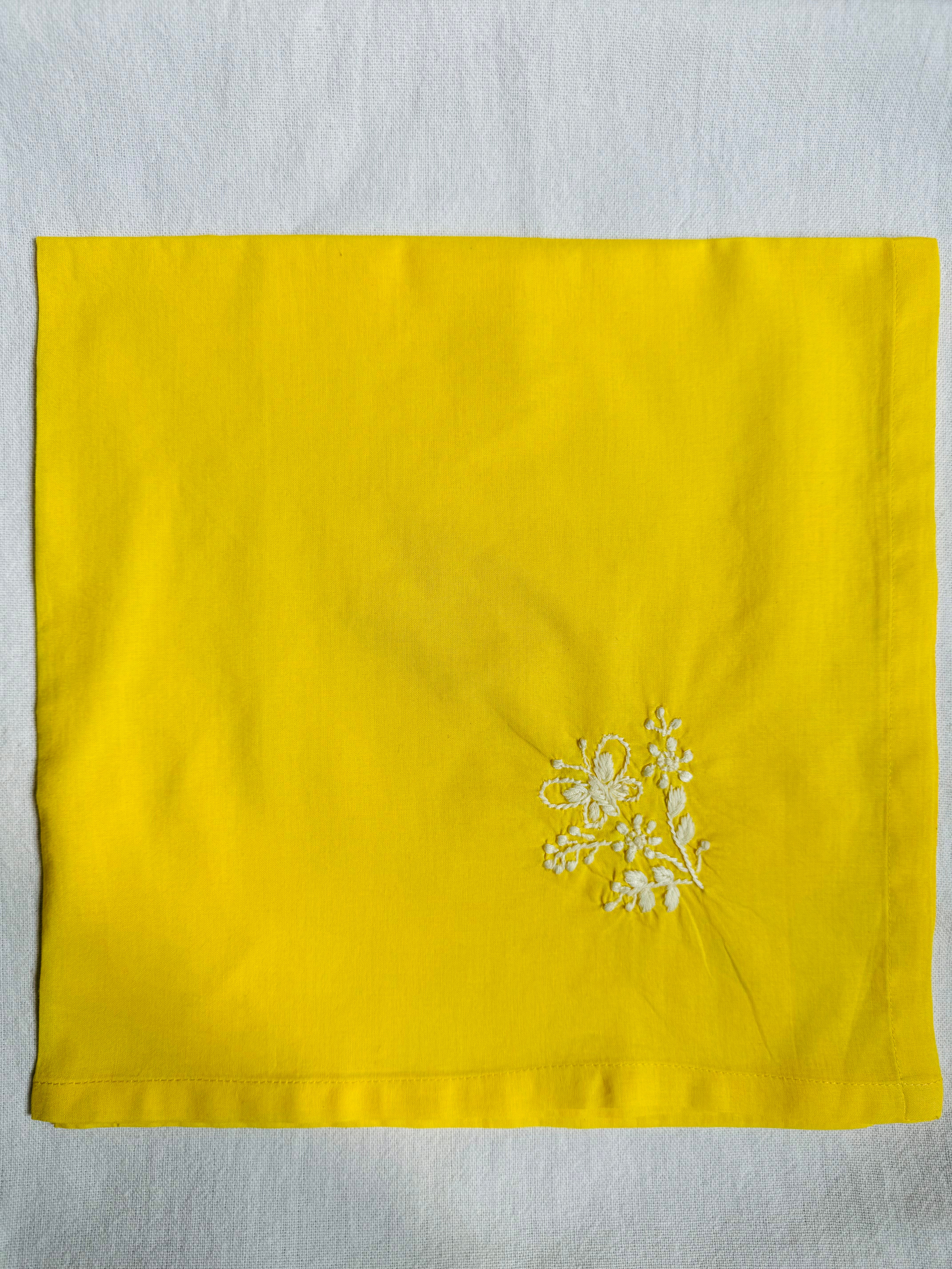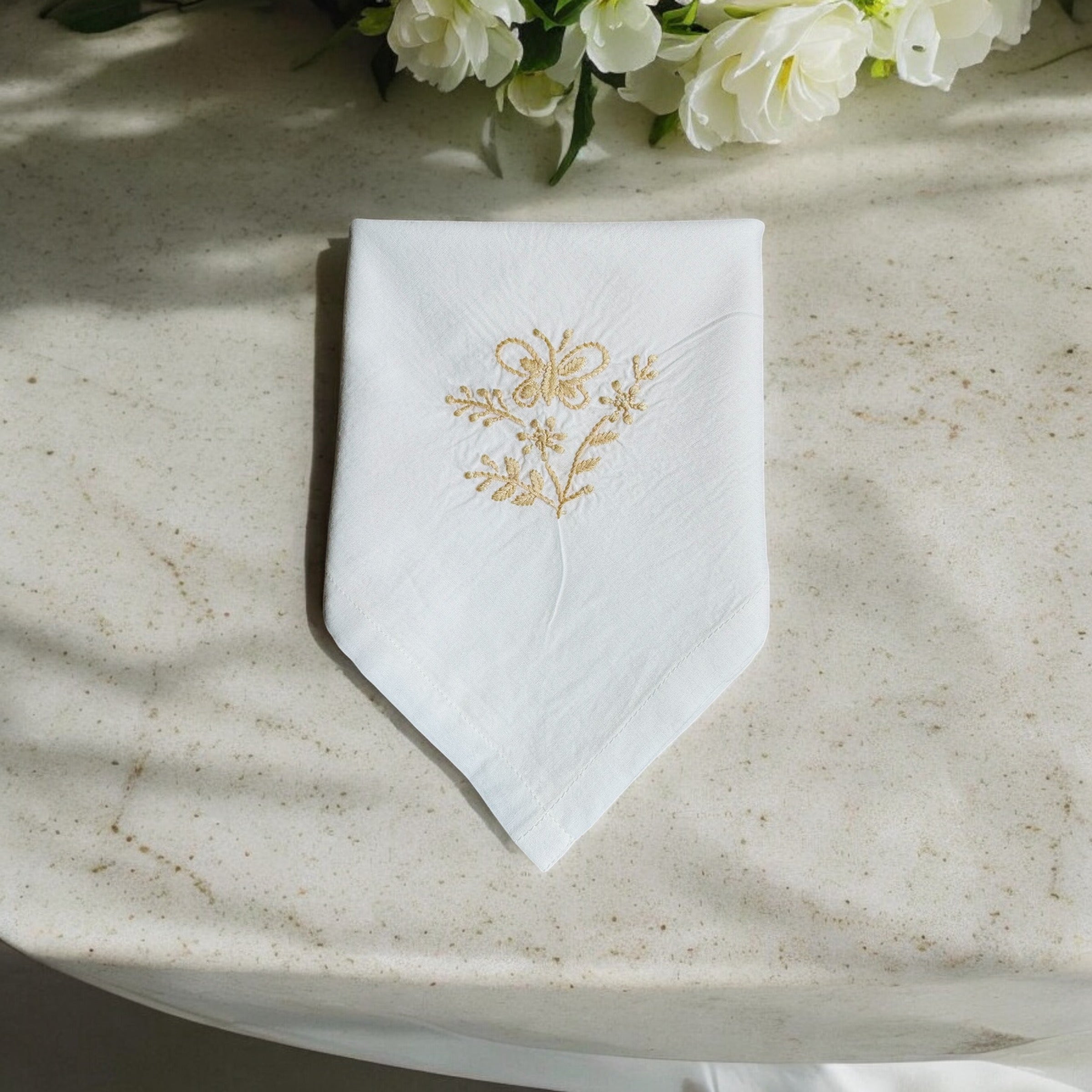 Crafted with elegance and artistry, the Anthophile Collection dinner napkin brings together the delicate beauty of Chikankari embroidery and the timeless charm of flowers. Each napkin is adorned with intricate floral motifs, inspired by an anthophile's love for blooms, adding sophistication and grace to your table setting. Whether for festive occasions or intimate gatherings, these napkins enhance any meal with a touch of artisanal luxury