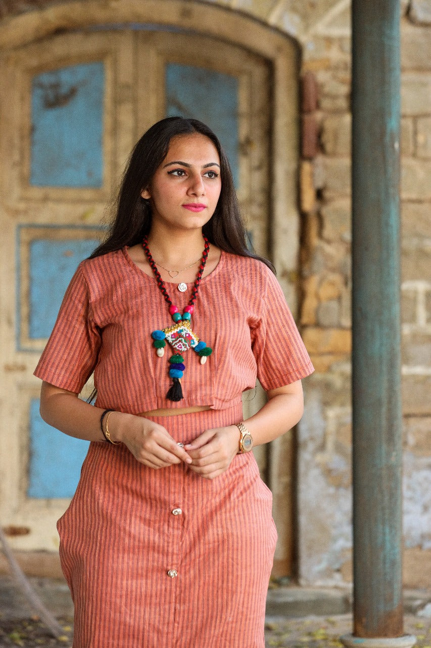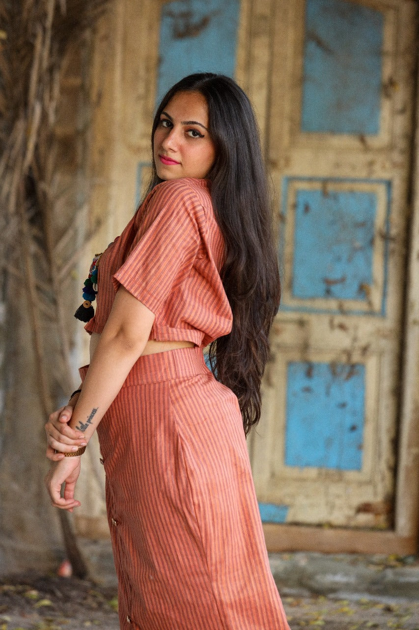 The Khadi Crop top and slim fit skirt will be the perfect choice to dress up your casual look. With its stunning high-low hemline and drawstring detail, this piece is made from pure cotton designed with a relaxed fit that provides easy comfort.