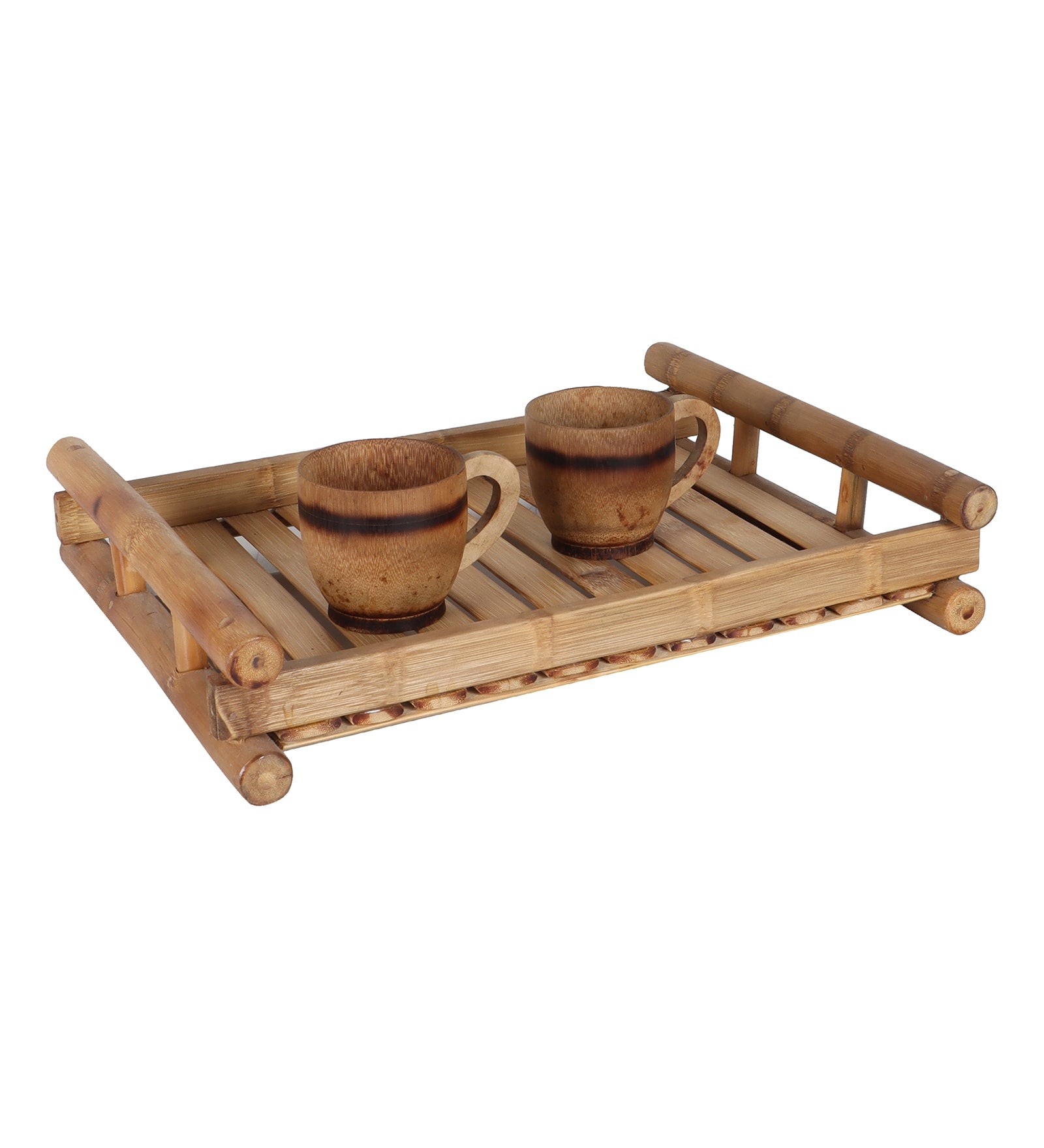 BAMBOO TRAY WITH SET OF 2 TEA CUP