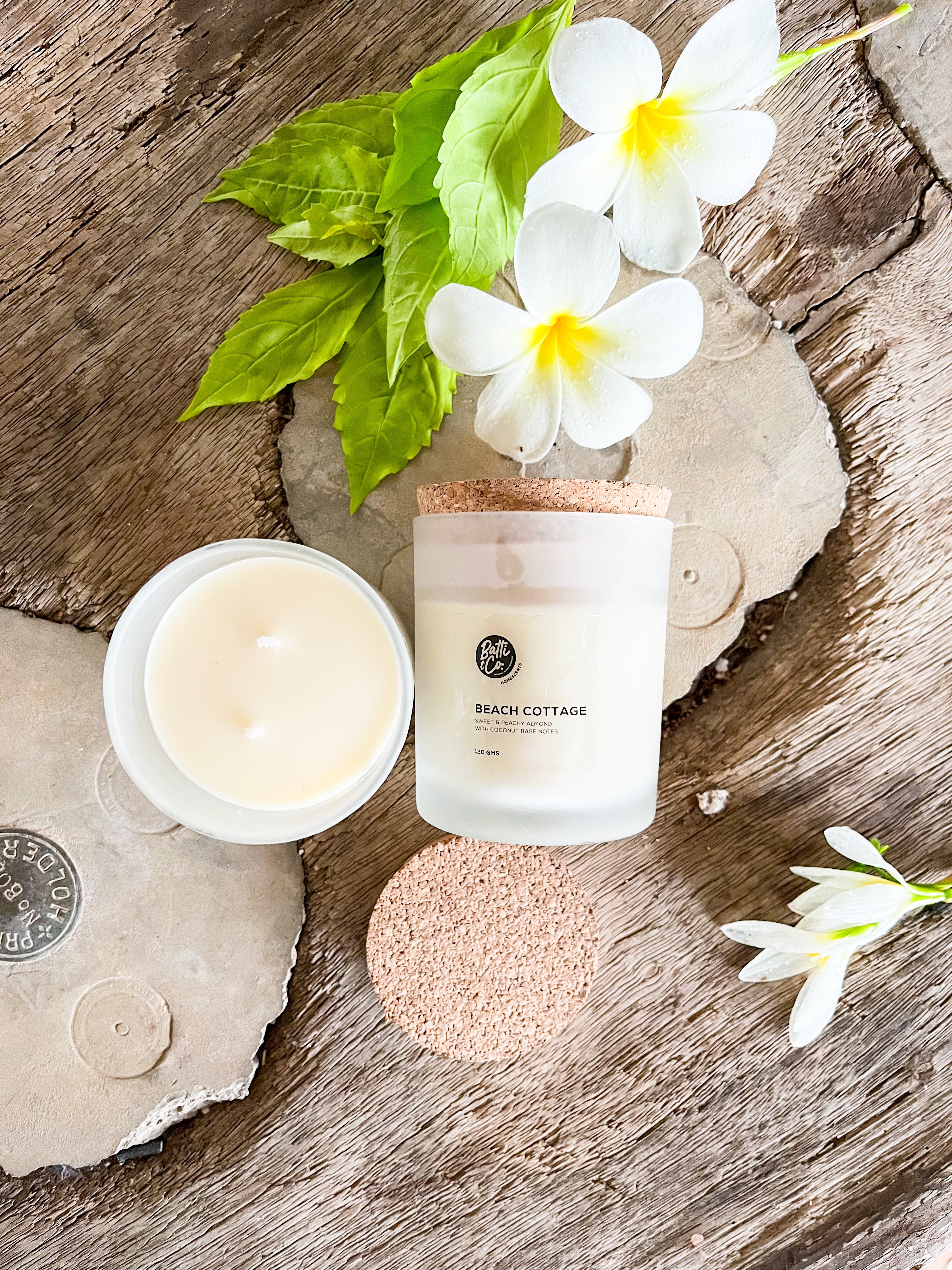 Beach Cottage has a delightfully sweet and peachy aroma with comforting coconut base notes.