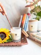 Bring home this classy soy candle to light up your favourite nook. Hand poured soy wax candle in an elegant & reusable white glass container can brighten and freshen up any corner of your home.