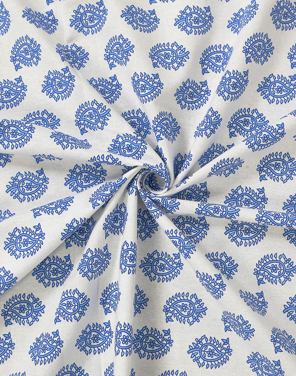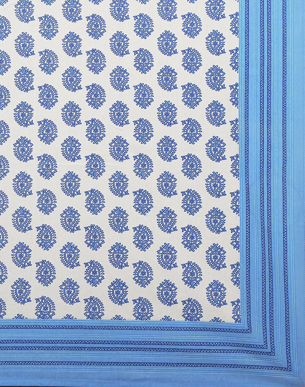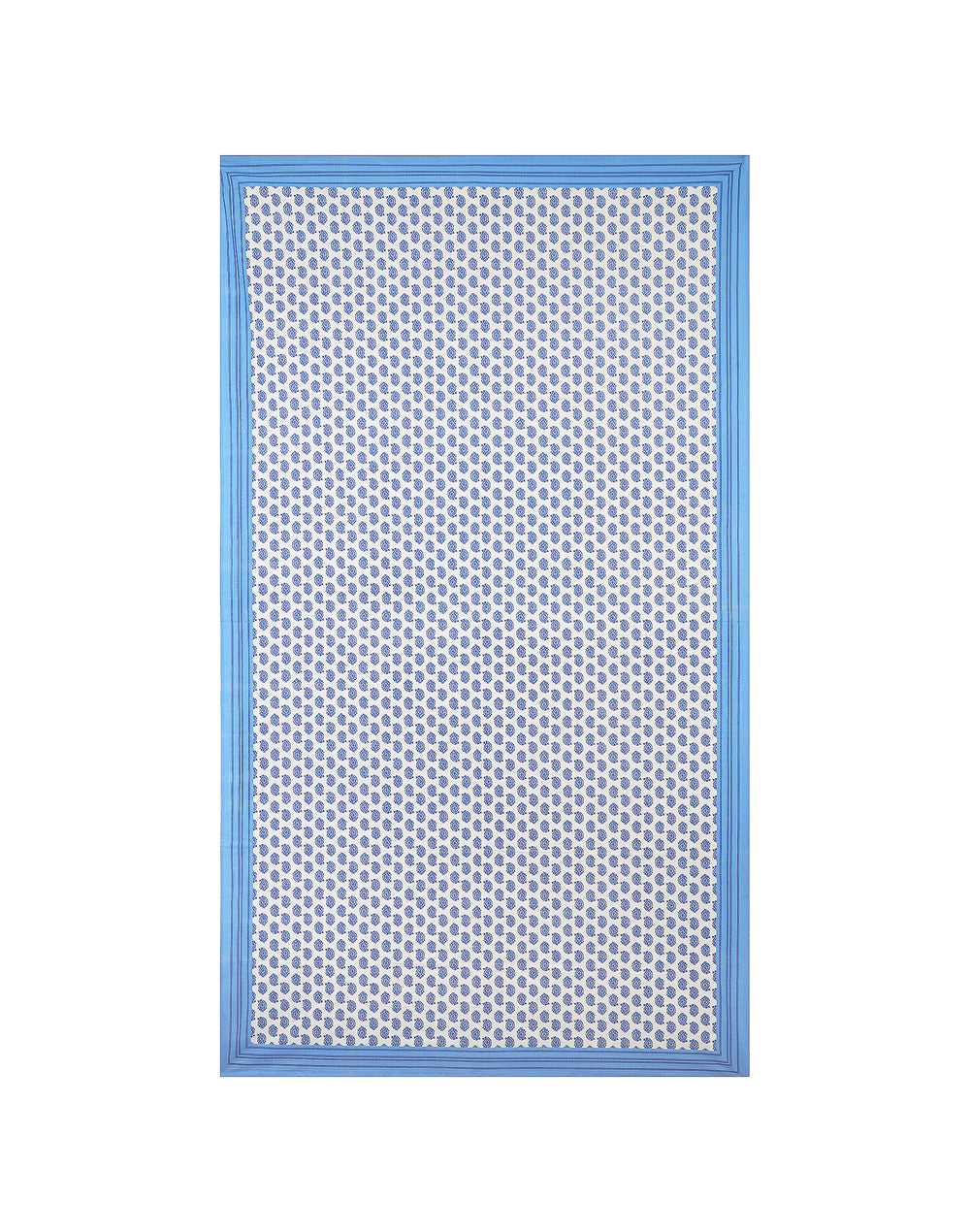 Blue Color Cotton Fabric Floral Printed Table Cover Size- 68"X118"