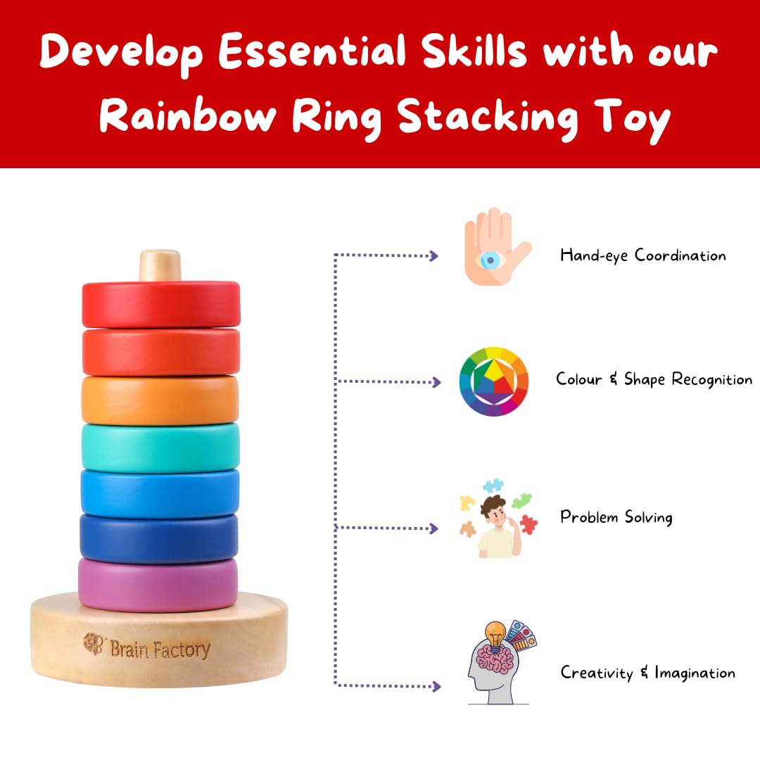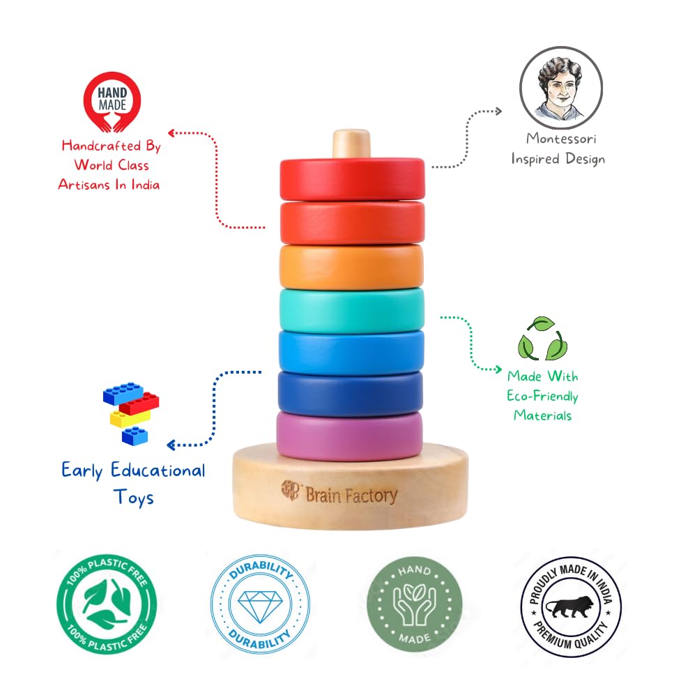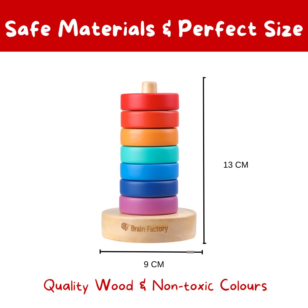Brain Factory Wooden Rainbow Stacking Toy For Kids 12 Months and Up