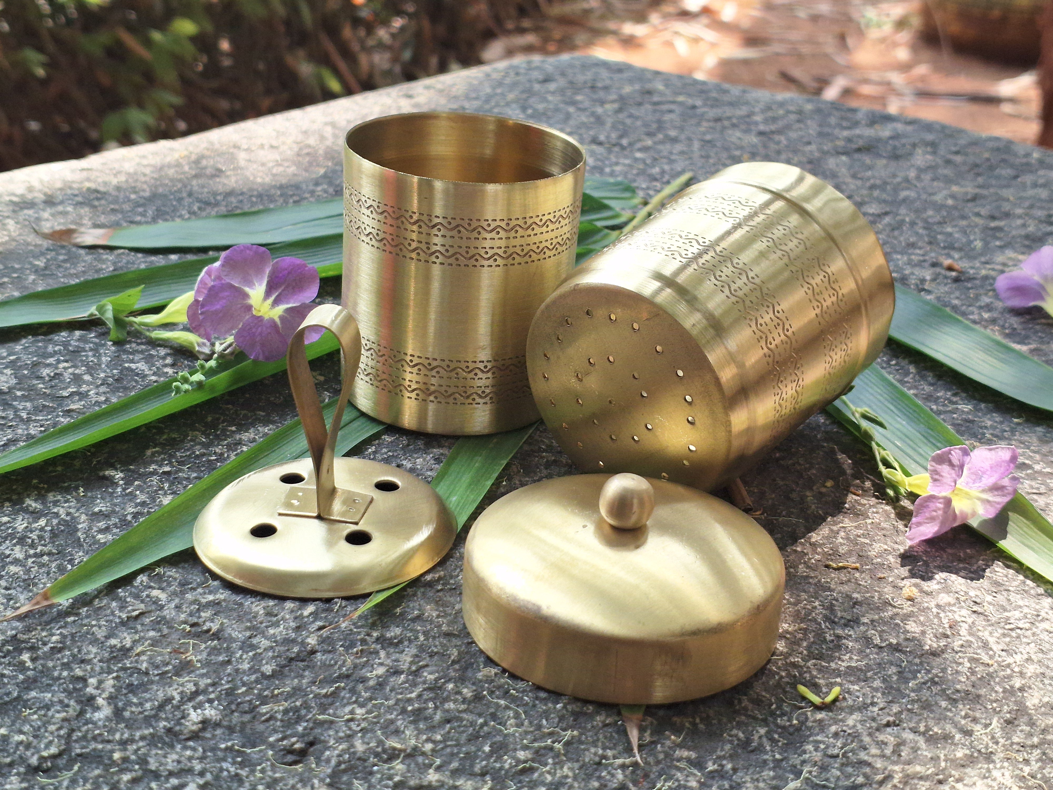 Pure Brass Coffee Filter – A masterpiece meticulously crafted by the skilled artisans of Tamil Nadu, with over a century of heritage in this timeless craft. Each piece intricately etched, bearing the mark of tradition and the essence of passion. Embrace the elegance of heritage with Earthbound Traditional Cookware. Elevate your coffee experience, one cup at a time.