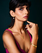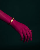 Embrace the delicate allure of Chameli, a small 4-petal floral motif plated in 18 Karat Gold, with a lustrous pearl at its heart. This elegant bracelet brings the enchantment of Shambhala's blooming gardens to your wrist, exuding a whimsical charm fit for a fairytale princess.