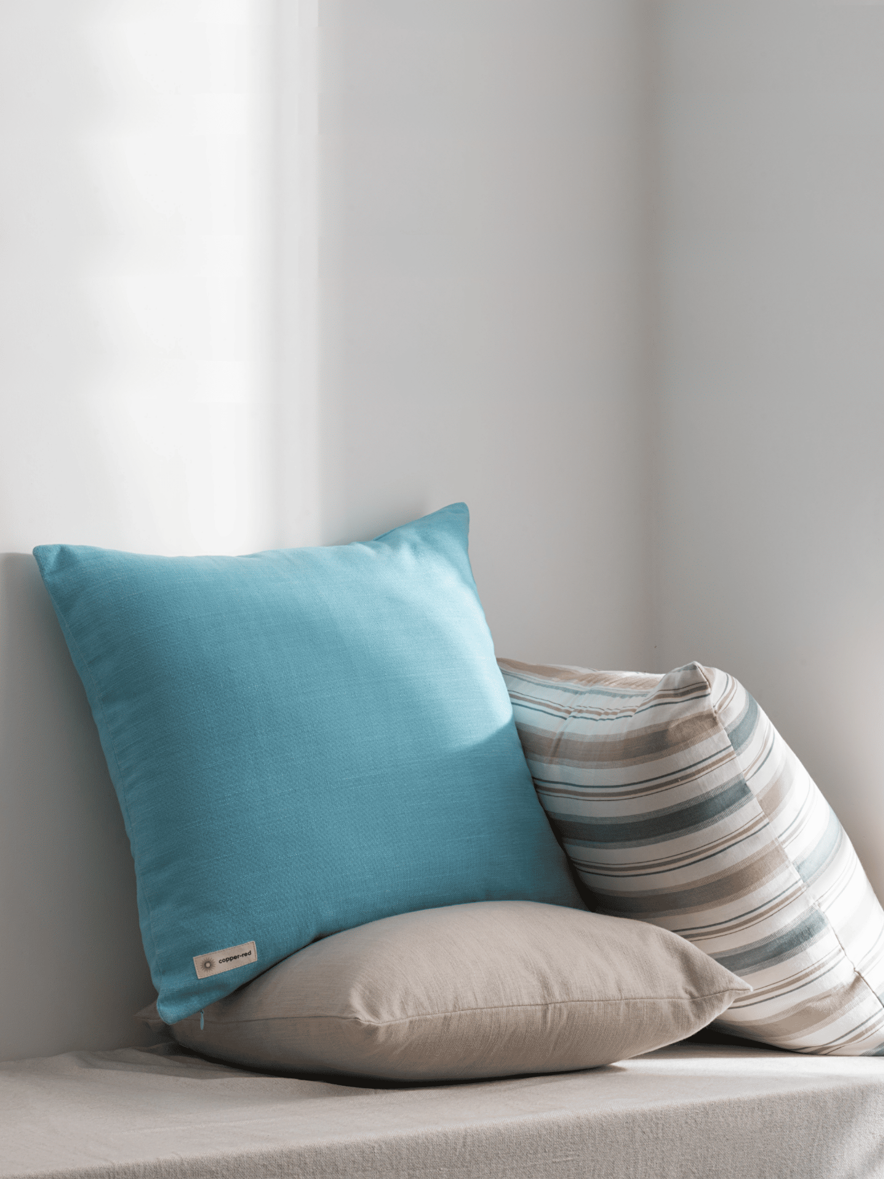 Inspired by the tranquil Mediterranean island, this 100% pure cotton cushion cover features a soothing powder blue hue, perfect for coastal, Scandinavian, and Japandi interiors. Designed for durability and comfort, it’s a soft yet refined accent for sofas, beds, and lounge spaces.
