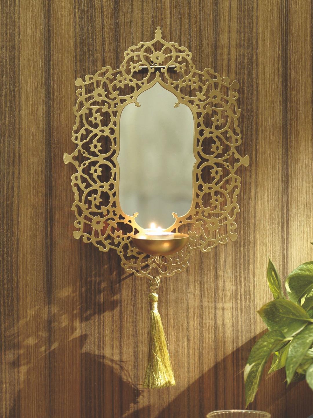 Add an eccentric touch and a special glow and elegance in your living space by opting for this beautiful Gangaur Wall mirror by Courtyard. The set is hand-crafted with precision using cast brass and imparts a smooth finished look that is sure to catch your fancy.