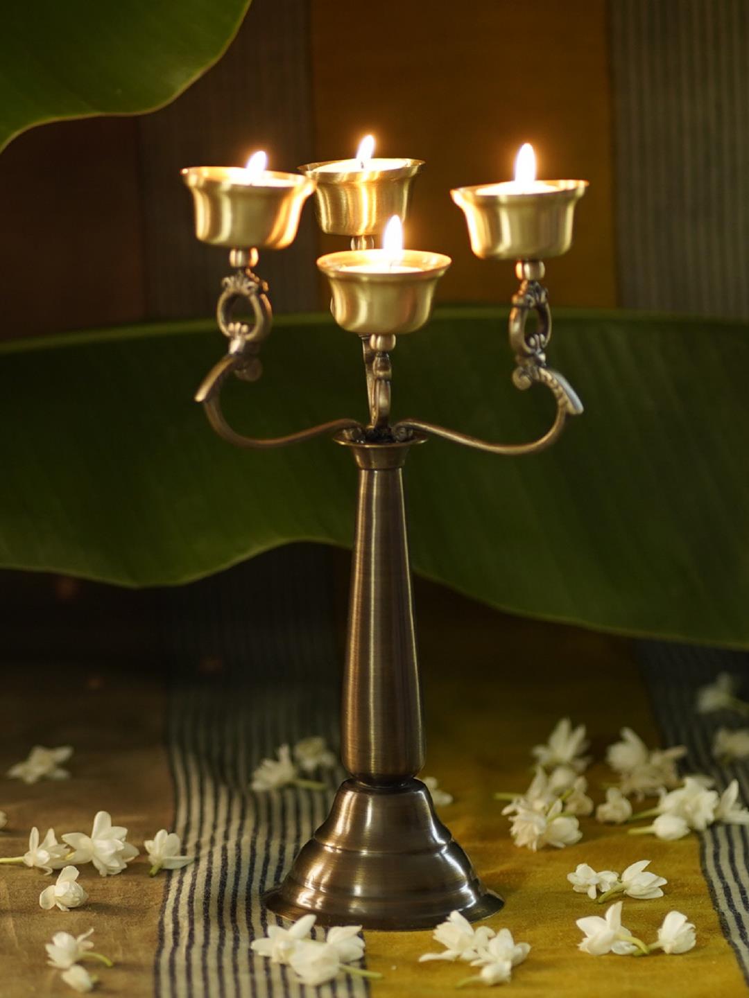 Light up your living space by opting for this Madurai Tealight stand by Courtyard. It is hand-crafted with precision using brass and imparts a smooth finished look that is sure to catch your fancy.