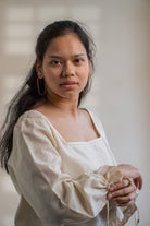 This Dawning Reversible Blouse comes in a calm and soothing color that we call Kora. The story lies in the dreamy sleeves. The adjustable drawstring allows you to manipulate the style of the sleeve enabling you to tell a new story with each wear.