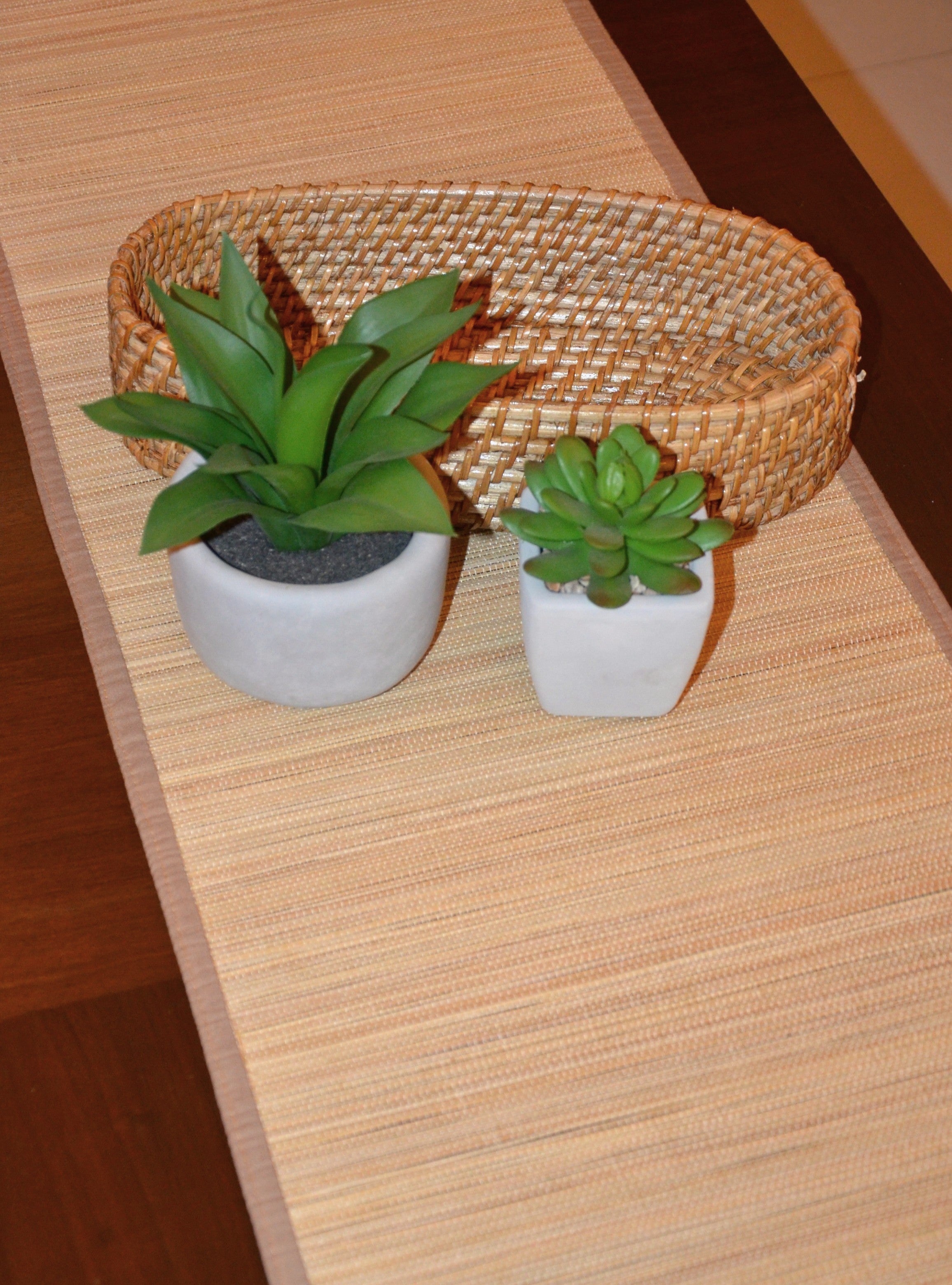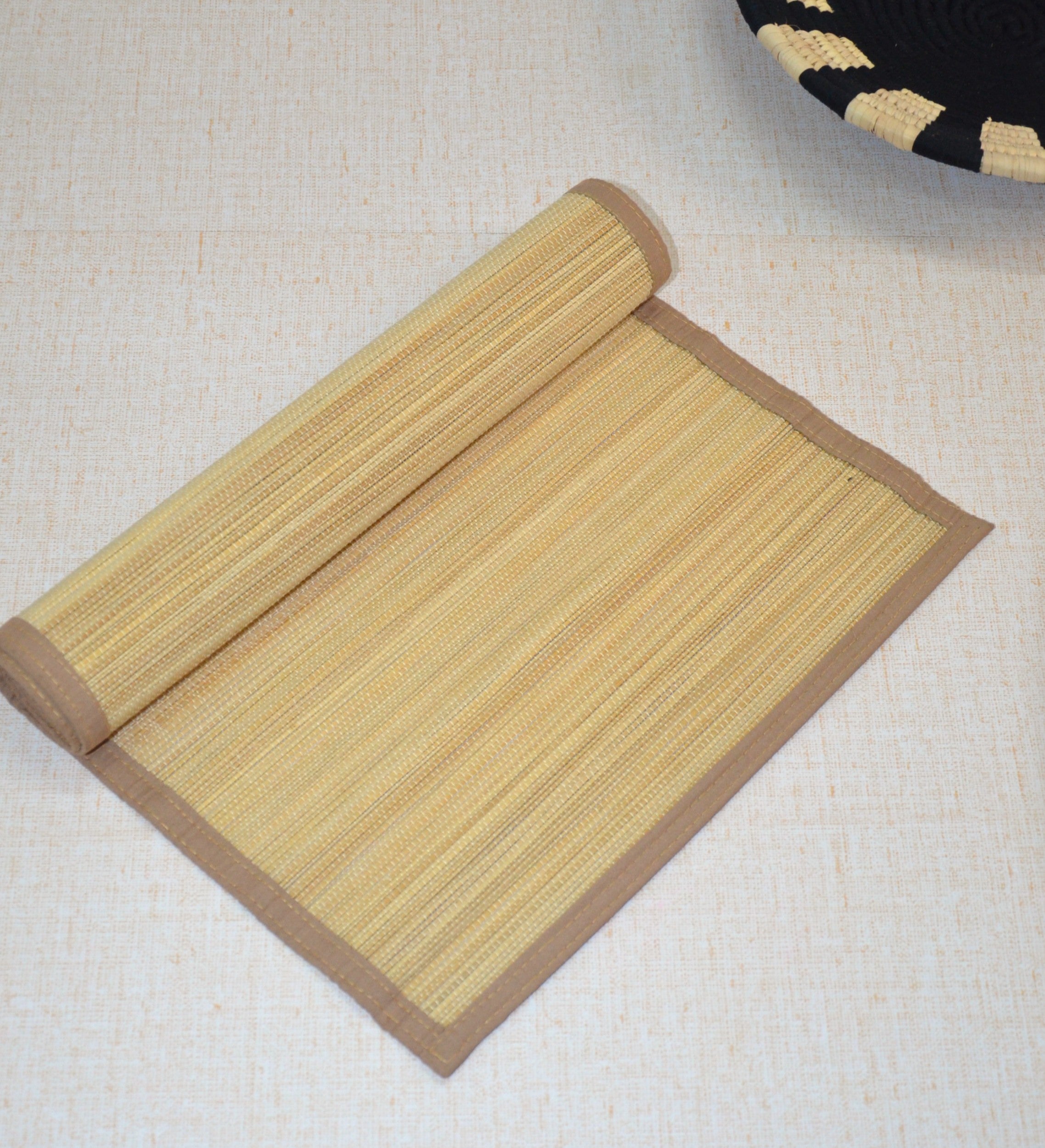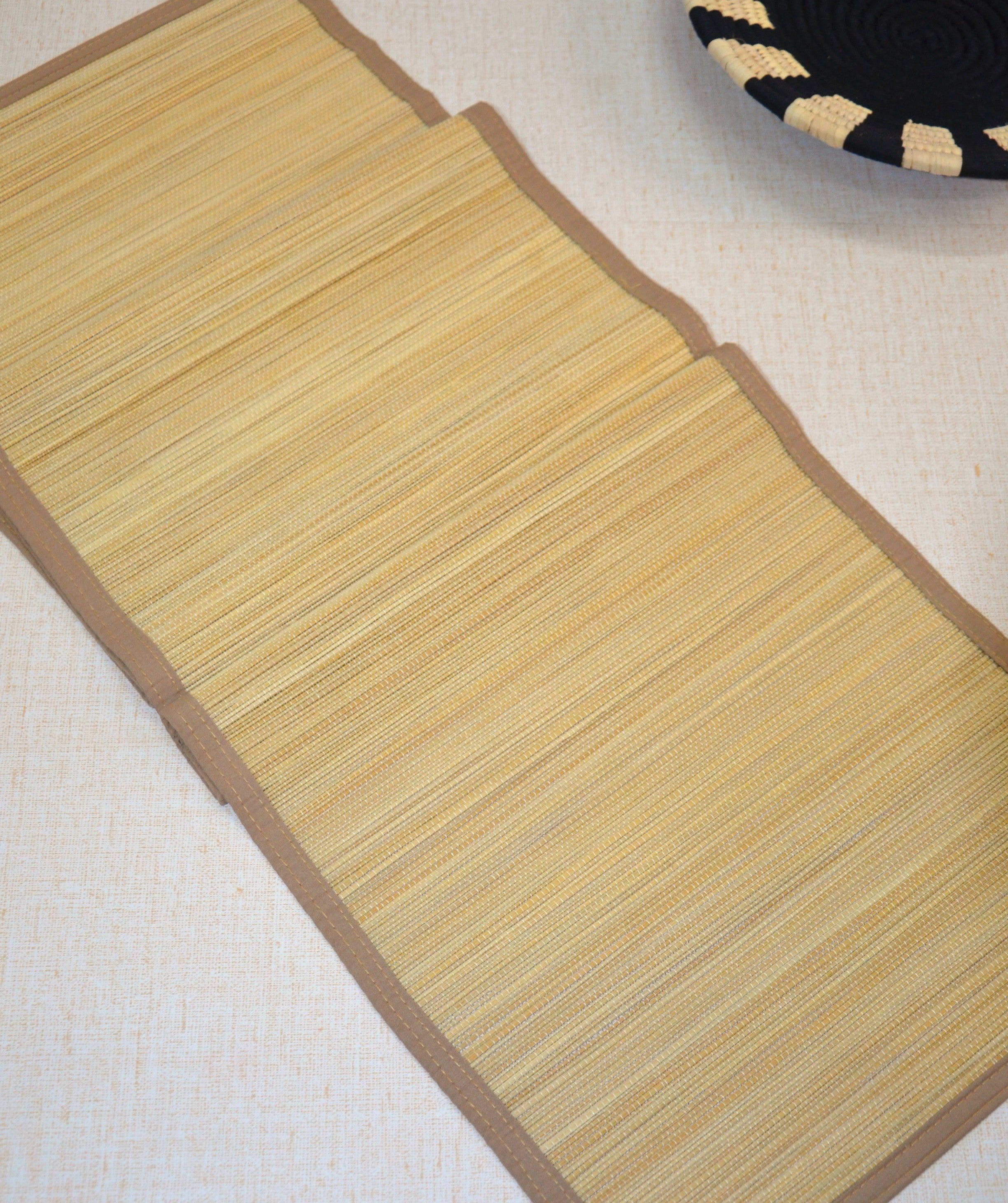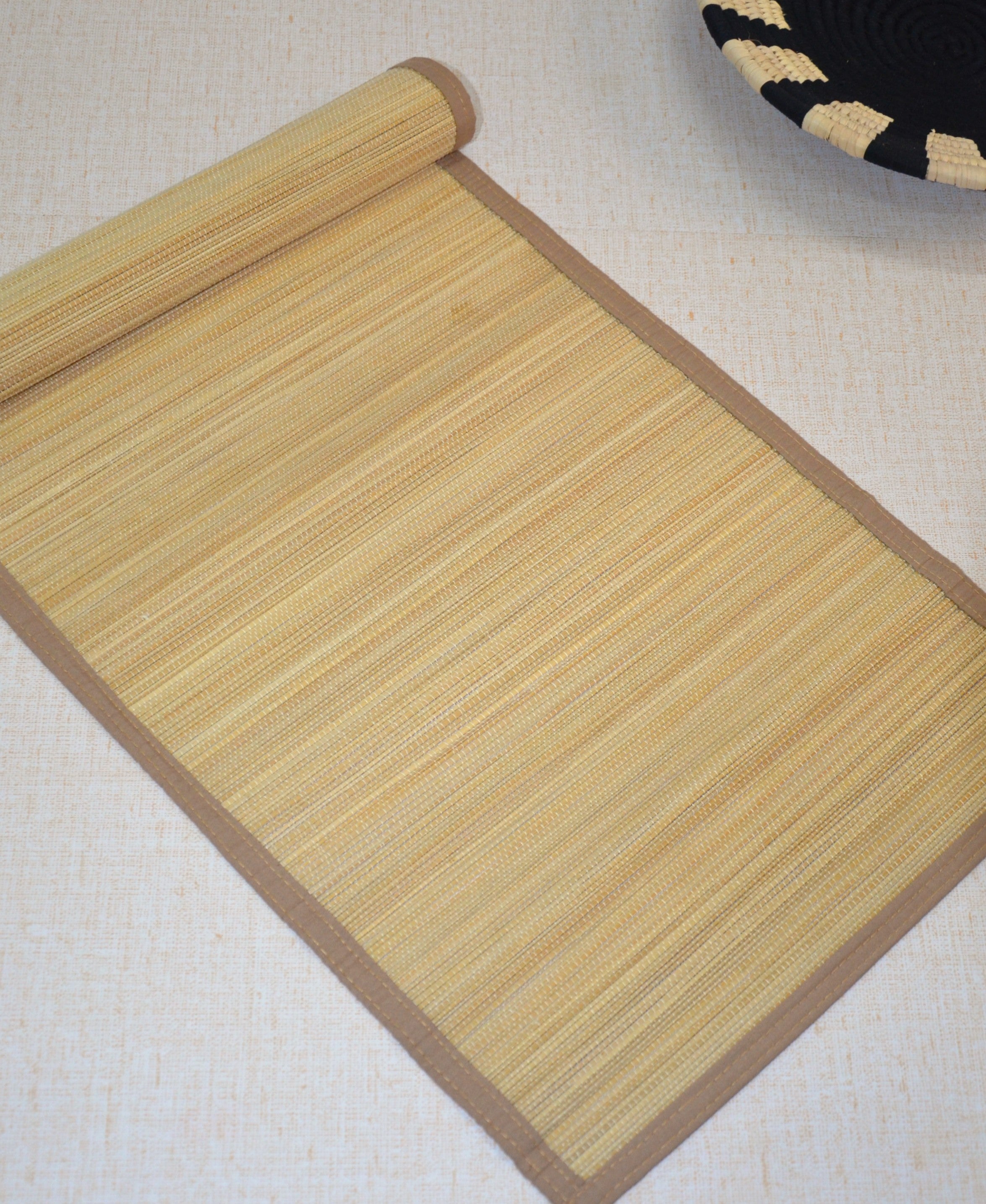 Table runner constructed from Bamboo sticks and interwoven with cotton thread. Earthy and Eco-friendly, these are a perfect addition to your home and complement most themes.