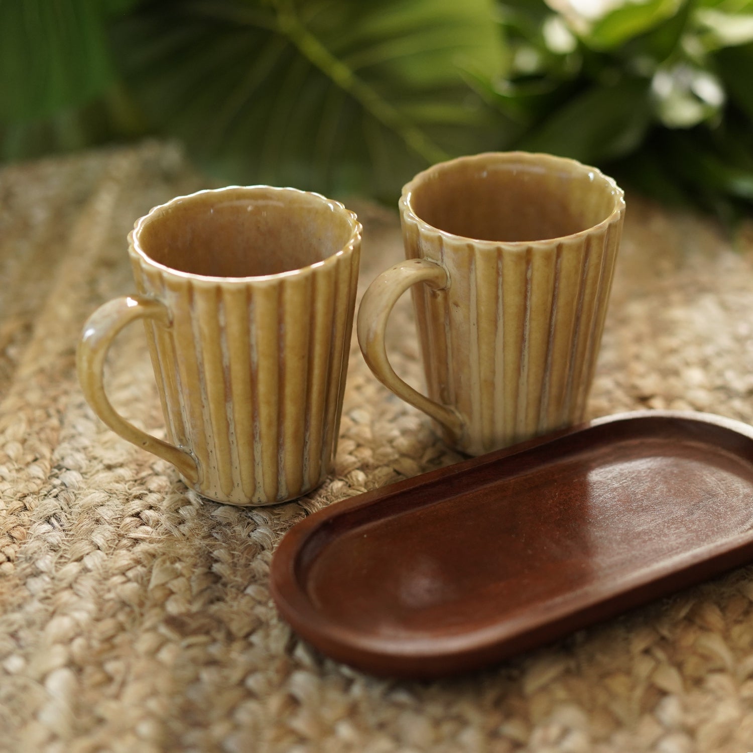 DHERA OCHRE COFFEE MUGS SET of 2 with OVAL TRAY