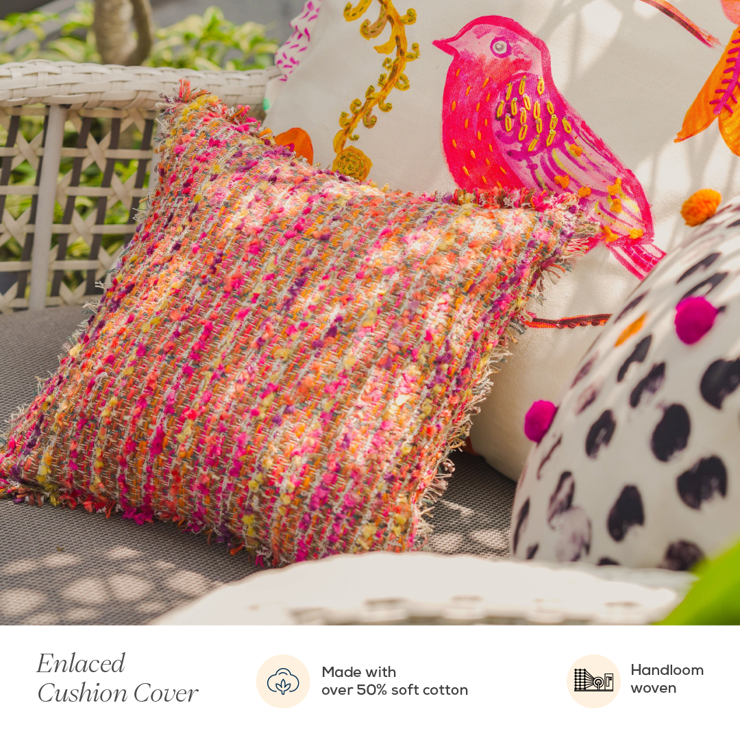 Step into the breezy allure of summer with our Hand-Woven Enlaced cushion cover, a vibrant splash of colors crafted to elevate your space. Woven with care and expertise, this lightweight fabric exudes freshness and charm, embodying the essence of the season. Each thread intertwines to create a tapestry of hues, reminiscent of sun-kissed days and cool, refreshing evenings. Embrace the playful elegance of this summery delight, bringing a touch of lightness and joy to your home decor.