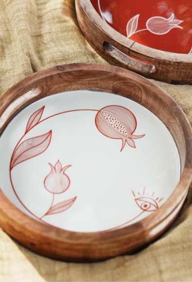 To ensure the tray remains in pristine condition: Cleaning: Gently clean with a soft, damp cloth. Avoid harsh detergents or abrasive materials that may damage the enamel surface. Handling: Avoid placing excessively hot items directly on the enamel to prevent damage. Storage: Keep in a dry, cool place, away from prolonged exposure to sunlight or humidity, to maintain the wood's natural finish. Maintenance: Occasionally, use natural oil or wood polish to nourish the wooden frame and keep it vibrant. This tray is more than a utility piece—it's a thoughtful blend of craftsmanship and creativity that promises to add elegance to every occasion.