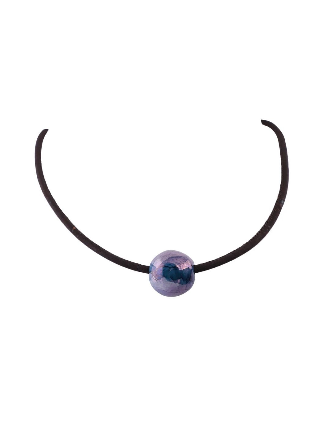 Gaia, our ethereal earth is the inspiration behind this elegant necklace. Dark brown cork and a ceramic sphere that is not perfectly shaped in hues of blue, purple and pink with a beautiful lustre is enclosed with a rose gold clasp. Wear it with a shirt or even with your traditional outfit to create a knock out look..