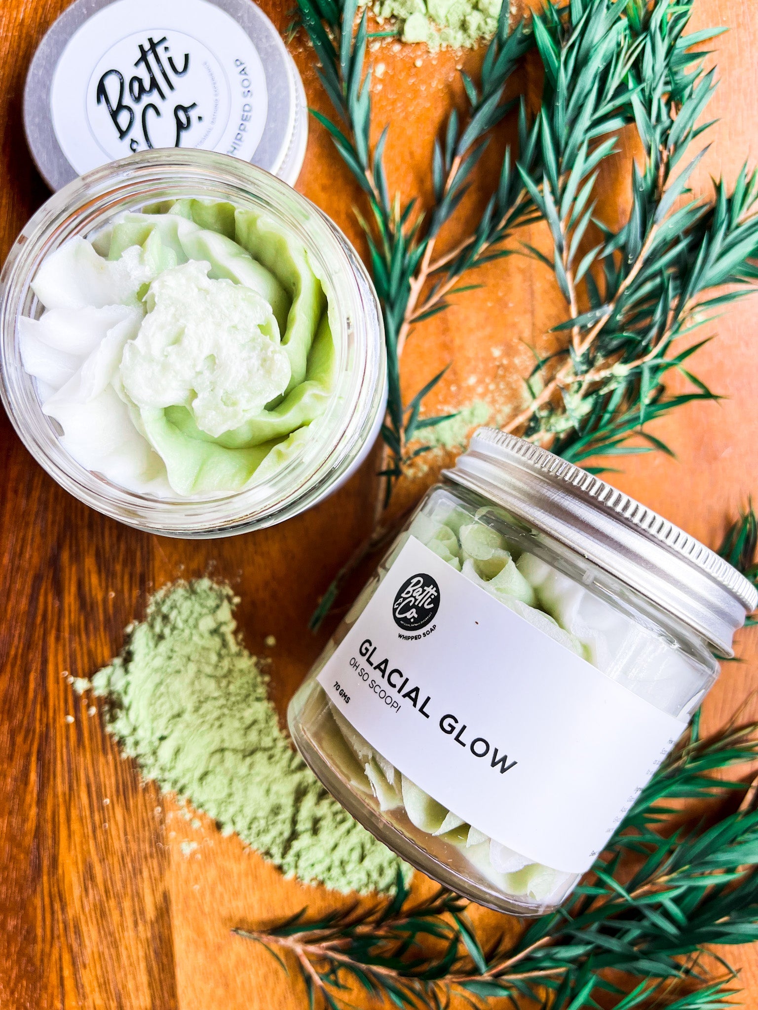 Glacial Glow whipped soap is a fun way to ditch the shower gels. This body wash is made using natural ingredients like Glacial Marine Clay and Sweet Almond Oil, this whipped soap literally has a texture like whipped cream - soft, fluffy and rich. It is pure creamy luxury, in a jar.