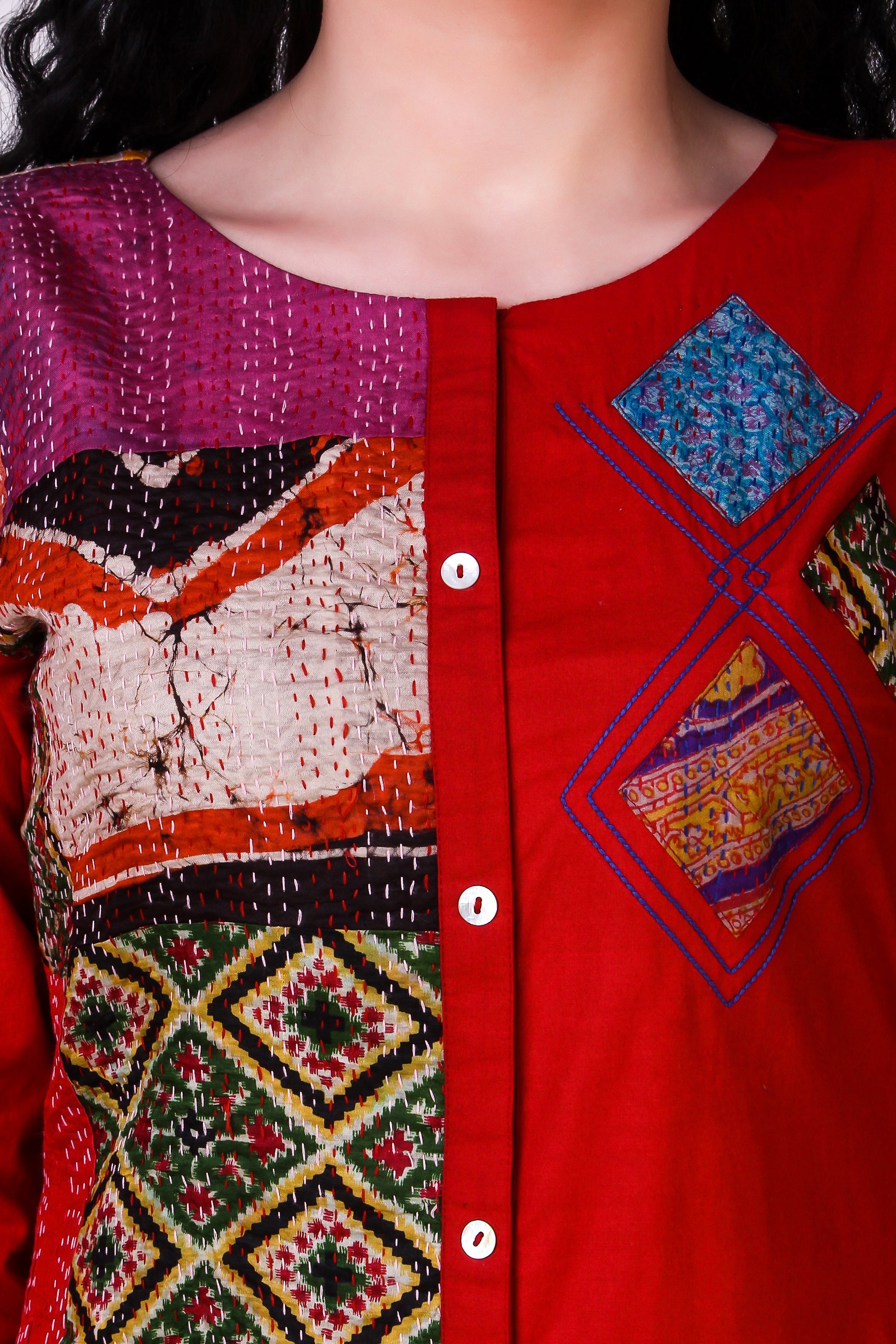 Disclaimer: Each piece is decorated with one-of-a-kind kantha embroidery and is uniquely handcrafted, hence no two products will be exactly the same. There may be slight irregularities in colors and patterns